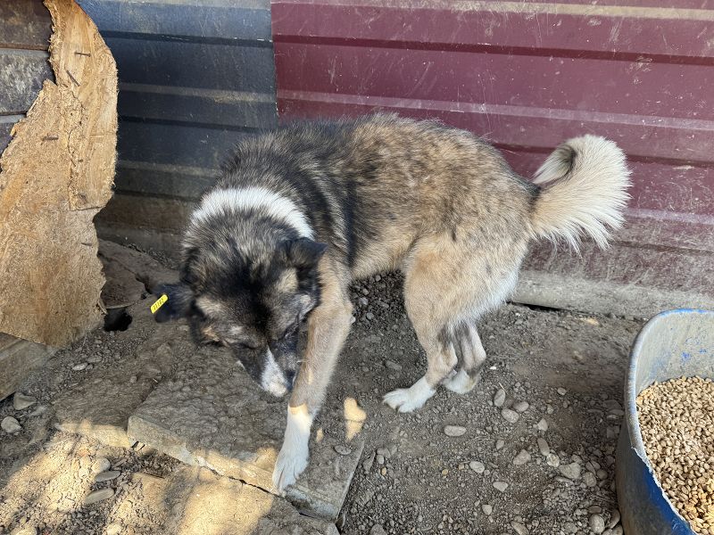SKIPPER ist viel zu dünn ist und hat eine alte Verletzung auf dem Rücken. In unserer Gegenwart trank und fraß er ausgiebig – vermutlich wird er ansonsten nicht ans Futter gelassen, obwohl er einer der Größten im Kennel ist.