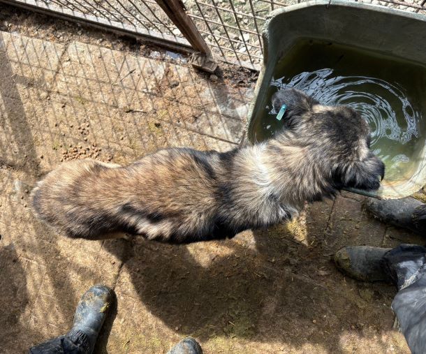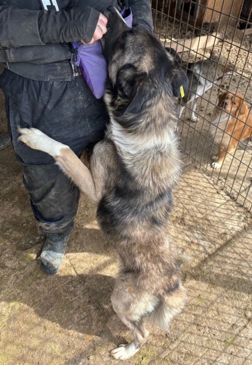 Der wunderschöne SKIPPER ist seit ca. Februar 2024 im großen, lauten Shelter und hielt sich während unseres Besuchs zunächst in der Hütte auf. Als wir uns ihm zuwandten, kam er vorsichtig heraus und zeigte sich von der ersten Sekunde an sehr zutraulich. Rührend suchte er die ganze Zeit unsere Nähe und genoss die Streicheleinheiten in vollen Zügen. Am liebsten wäre SKIPPER in uns hineingekrochen, so sehr schmiegte er sich an uns.