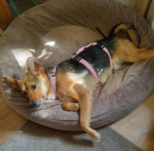 Im Haus ist sie nahezu unsichtbar, sie genießt ihr weiches Körbchen und verlässt dieses eigentlich nur noch einmal, wenn es etwas zu Futtern gibt. Skrollan lebt auf Ihrer Pflegestelle mit Pferden und Katzen zusammen, mit beiden war der Umgang von Anfang an unkompliziert.