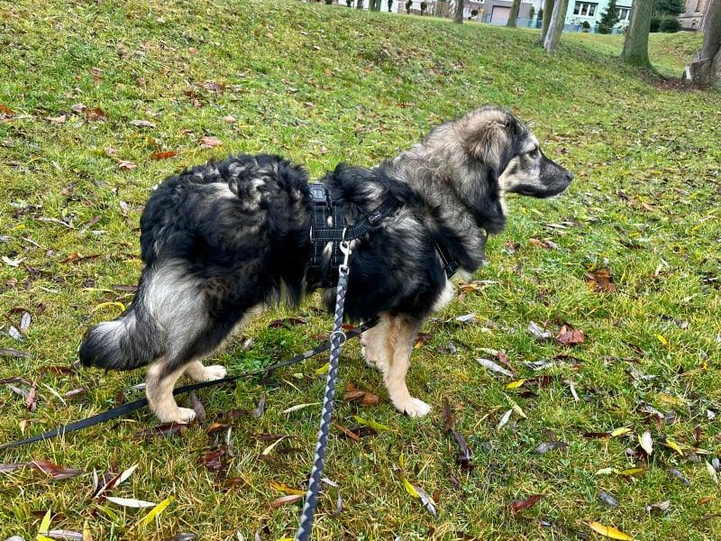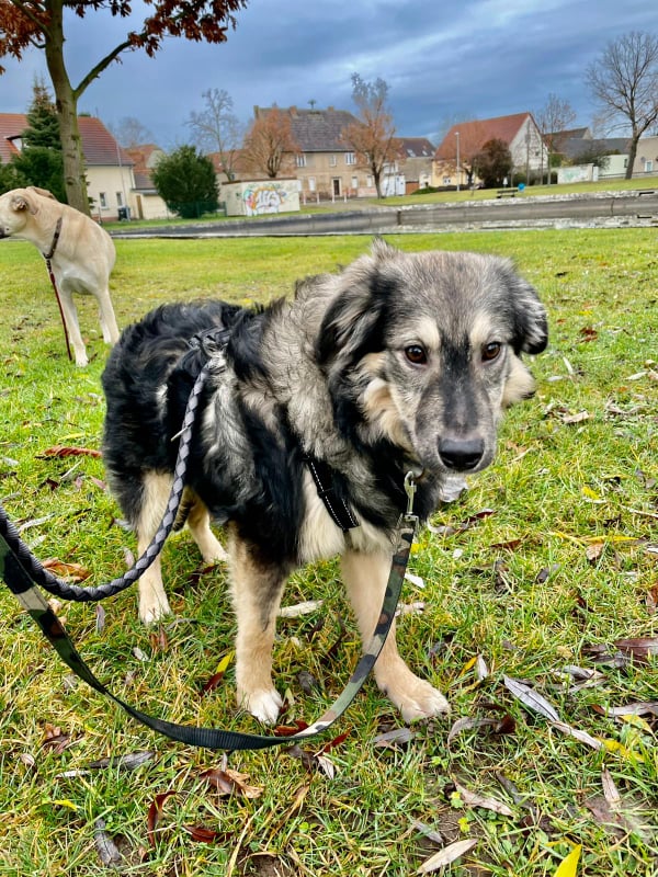 Smoky ist seit Ende November 2020 auf Pflegestelle. Der intelligente, zuckersüße Kerl überzeugt mit einer Menge Charme und ganz viel Flausch. Sobald er Vertrauen gefasst hat, ist er ein richtig witziger Kerl, der unglaublich gern spielt und dem Menschen ein Lächeln ins Gesicht zaubert. Mit seinem Hundekumpel versteht sich Smoky sehr gut, andere Hunde sind ebenfalls kein Problem. Ein souveräner Ersthund erleichtert ihm das Leben ungemein, weshalb er zu einem weiteren Hund vermittelt werden sollte. Pferde und Katzen sind für ihn ebenso kein Problem. Smoky hat, ganz junghundtypisch, viel Quatsch im Kopf. Er sucht sich gern eine Socke oder etwas ähnliches und kaut darauf rum. Bällchen findet er auch ganz toll. Und Taschentücher. Und Kuscheltiere…. Hauptsache spielen und Spaß haben. An der Leine läuft Smoky sehr gut, der Rückruf klappt ebenfalls super, genauso die Basics wie Sitz, Platz, „Körbchen“, „Gib Pfote“ und auf einem bestimmten Platz zu warten. Er lernt sehr schnell und hat super viel Freude dabei. Das Alleinbleiben klappt auch schon gut, allerdings ist immer ein weiterer Hund dabei. Er ist stubenrein und schläft nachts durch. Smoky liebt die Nähe seiner Bezugsperson(en) und ist extrem verschmust. Er wird bloß in ein ländliches Zuhause vermittelt, mit einem weiteren Hund oder Menschen, die viel Erfahrung haben und dem süßen Kerl in unsicheren Momenten den richtigen Weg weisen.