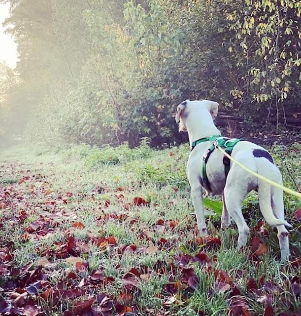 Unterwegs ist sie mit der Nase durchaus interessiert, sehr ruhig und entspannt dabei.