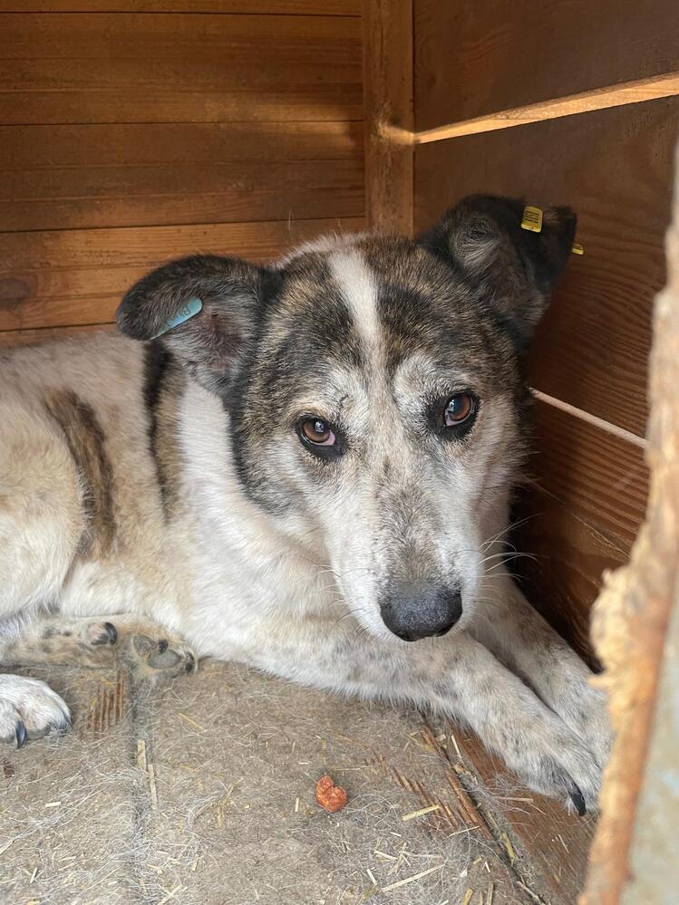 Zwei kleine, ängstliche, süße Äuglein waren alles, was wir von SNOWIE zu sehen bekamen, SNOWIE saß ausschließlich hinter der Hütte. Wir haben das Gefühl SNOWIE kennt Menschen gar nicht oder hat fast nur schlechte Erfahrungen gesammelt. Es wäre sehr wichtig für SNOWIE, dass sich ein Zuhause findet, in dem das Herz Vertrauen aufbauen kann und wieder Lebensfreude findet.
