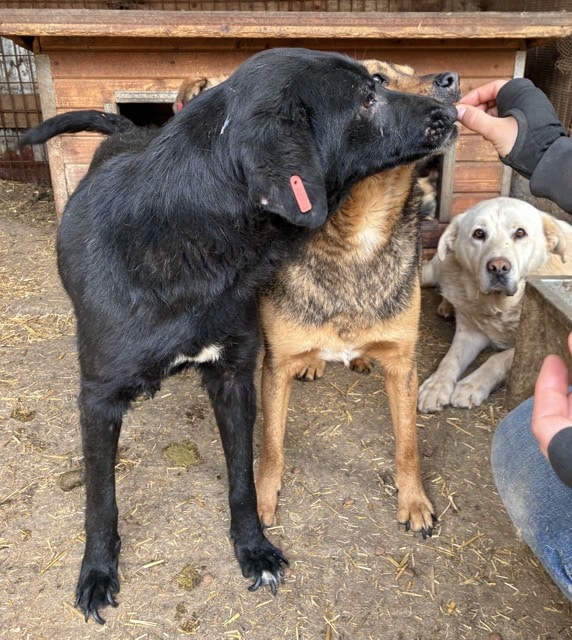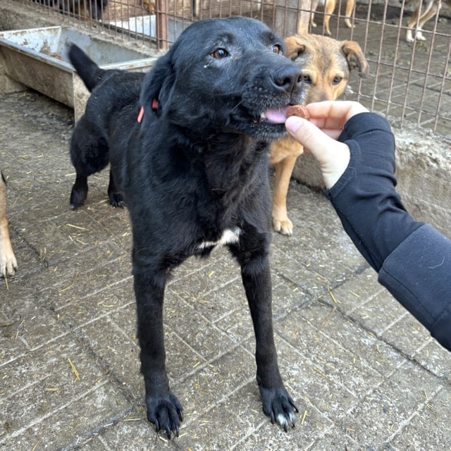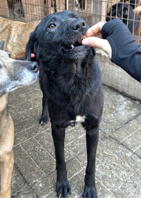 Unsere bezaubernde SOARTA wartet nun bereits seit 2 langen Jahren vergeblich auf ihre Chance… Sie ist immer noch neugierig und beobachtet uns Menschen stets mit der Frage in ihrem Blick, ob wir es gut mit ihr meinen. Was sie von uns möchte, weiß die süße Hündin ganz genau – Unsere mitgebrachten Leckerlie nahm sie mit Begeisterung direkt aus der Hand. Dabei gelang es uns immer wieder, sie behutsam am Schnäuzchen zu berühren. Sie wollte zwar ausweichen, was ihr auch gelang, aber sie zeigte keine Abwehrreaktionen und kam stets zurück zu uns. Wahrscheinlich kennt sie den wohlwollenden Körperkontakt mit uns Menschen einfach nicht, niemand hat ihr bisher gezeigt, was es bedeutet zu vertrauen. Doch SOARTA hat uns gezeigt, dass sie es gern lernen will. Sie war außerhalb der Hütte immer wieder ganz vorne mit dabei um sich Leckerlie abzuholen und mit mehr Zeit wäre sicherlich noch mehr möglich gewesen. In der Hütte ließ sie sich unter Bedrängung kurz streicheln, suchte sich dann aber doch lieber einen Ausweg. Wir denken, dass unsere Black Beauty SOARTA bei geduldigen und erfahrenen Menschen in einer ruhigen Umgebung rasch auftauen würde. Sie ist sehr neugierig und interessiert und mit Leckereien gut zu überzeugen, dass der Kontakt zu uns Menschen lohnenswert sein kann. Da sie mit allen Hunden in ihrem Kennel verträglich scheint, wäre ein netter Ersthund ideal für unsere noch etwas schüchterne SOARTA. Wir glauben, dass die kleine Maus dann ganz schnell lernt, wie schön ein Leben mit uns Menschen sein kann. Mit ihren vier Jahren sind ihre niedlichen Knopfaugen noch offen und hoffnungsvoll, die Welt hier draußen noch einmal ohne Kennelgitter zu erleben. Damit dieser Blick nicht verzweifelt wird, braucht sie jetzt schnell ihre besonderen Menschen, die ihr die Chance auf ein glückliches Hundeleben ermöglichen.