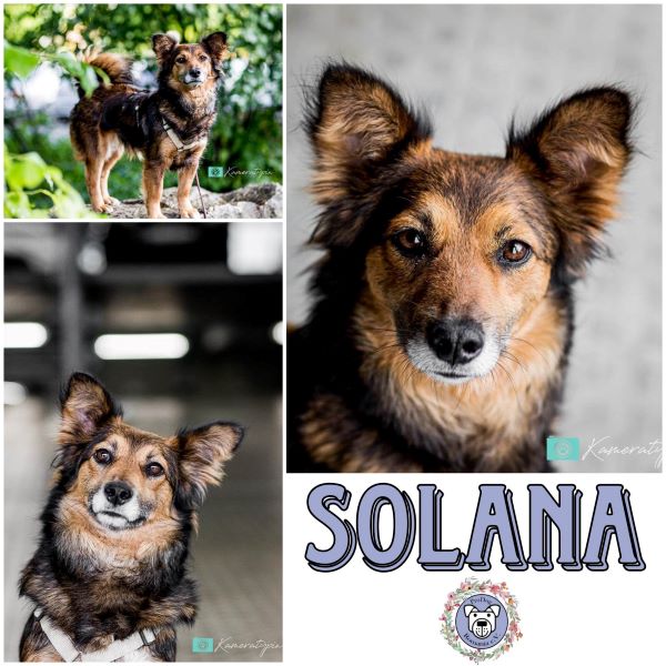 Auf ihrer Pflegestelle lebt Solana jetzt mit zwei weiteren Hunden zusammen. Klare Grenzen tun ihr gut, sie lernt schnell, ist aber hier und da, im Zusammenleben mit Menschen und ihrer Umgebung noch ein bisschen unerfahren und reagiert situativ unangemessen (d.h. dass sie, in für sich empfundenen Konfliktsituation mit Manipulation, wie Hände lecken und übertriebener Freundlichkeit, löst) und unsicher.