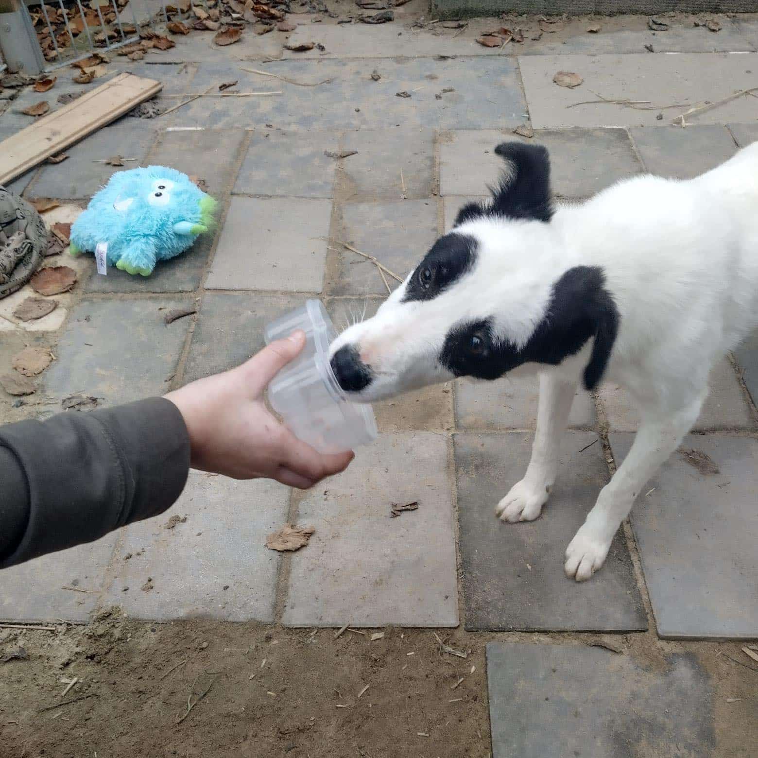 Anfängliche Schwierigkeiten mit meinen anderen Hunden haben wir sehr gut in den Griff bekommen und sie kann mittlerweile sogar mit ihnen spielen, sowohl wild und ausgelassen als auch zärtlich und vorsichtig. Lediglich wenn Futter ins Spiel kommt oder ich sie längere Zeit mit den anderen Hunden alleine lass, wird sie unsympathisch. Das habe ich mit Fernüberwachung ausprobiert und festgestellt, dass sie immer noch jemanden an ihrer Seite benötigt, der ihr ein Gefühl von Sicherheit gibt und dafür sorgt, dass es Regeln gibt und diese auch eingehalten werden. Wahrscheinlich hat sie in Rumänien hier schlechte Erfahrungen mit ihren Zwingerkollegen gemacht. Deswegen wird sie zur Fütterung als auch nachts und wenn ich mal nicht da bin separiert. Dadurch lernt sie auch gut das alleine bleiben und neigt hierbei auch nicht zu Zerstörungen des Mobiliars oder ähnlichem.