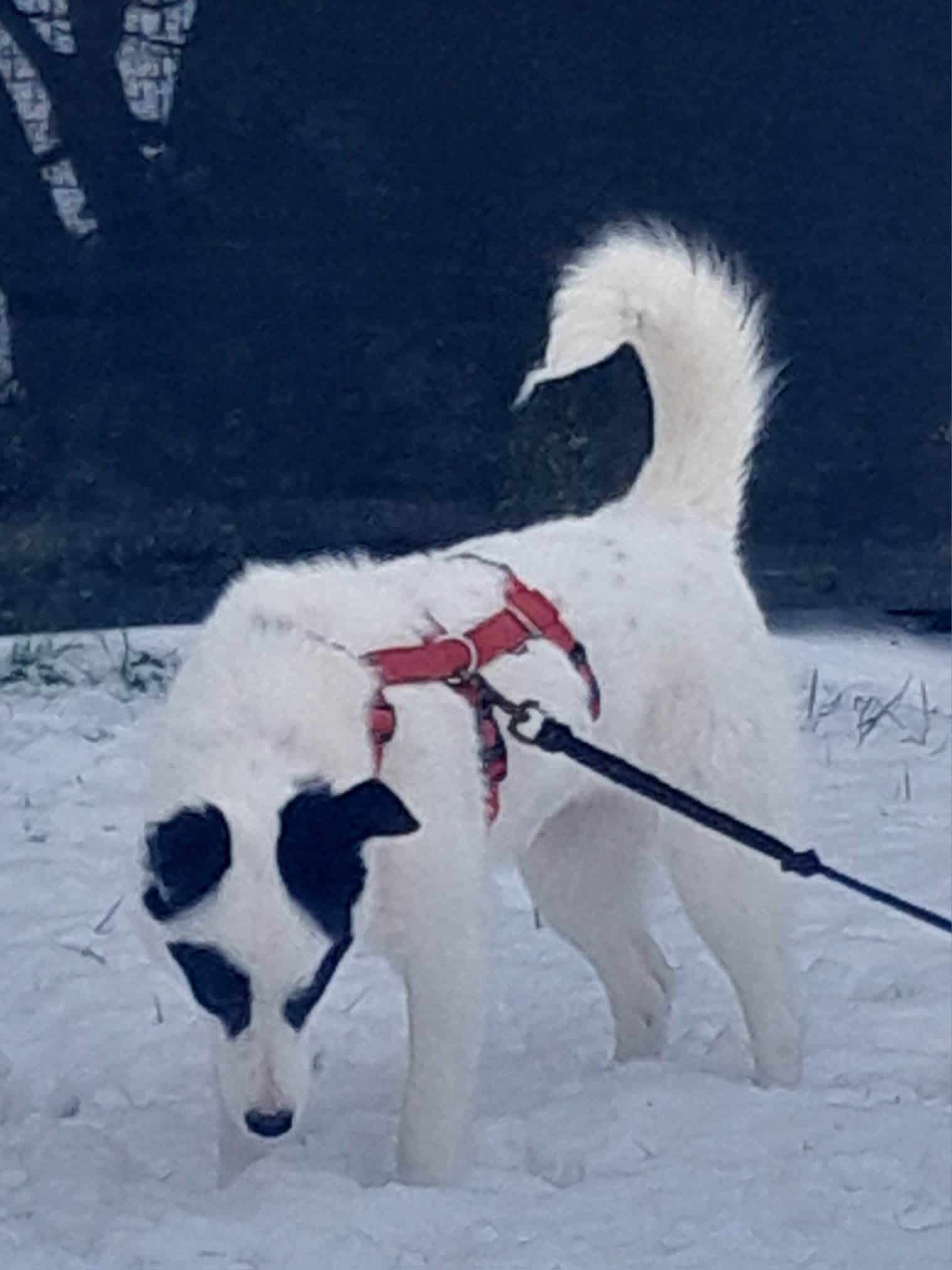 Draußen läuft sie mittlerweile recht entspannt und brav an der Leine, lediglich wenn fremde Personen dabei sind oder fremde Hunde auftauchen ist ihr das nicht angenehm und versetzt sie in Spannung. Aber auch daran kann man arbeiten. Das geht hier leider nur in kleinen Schritten neben meiner täglichen Arbeit und den anderen Hunden und würde sicherlich schnell besser werden wenn sie Einzelhund wäre. Als Zweit- oder Dritthund kann ich sie mir nur dann gut vorstellen wenn es sich um souveräne, nette Hunde handelt und man die Möglichkeit hat die Hunde bei Bedarf zu separieren, s.o.