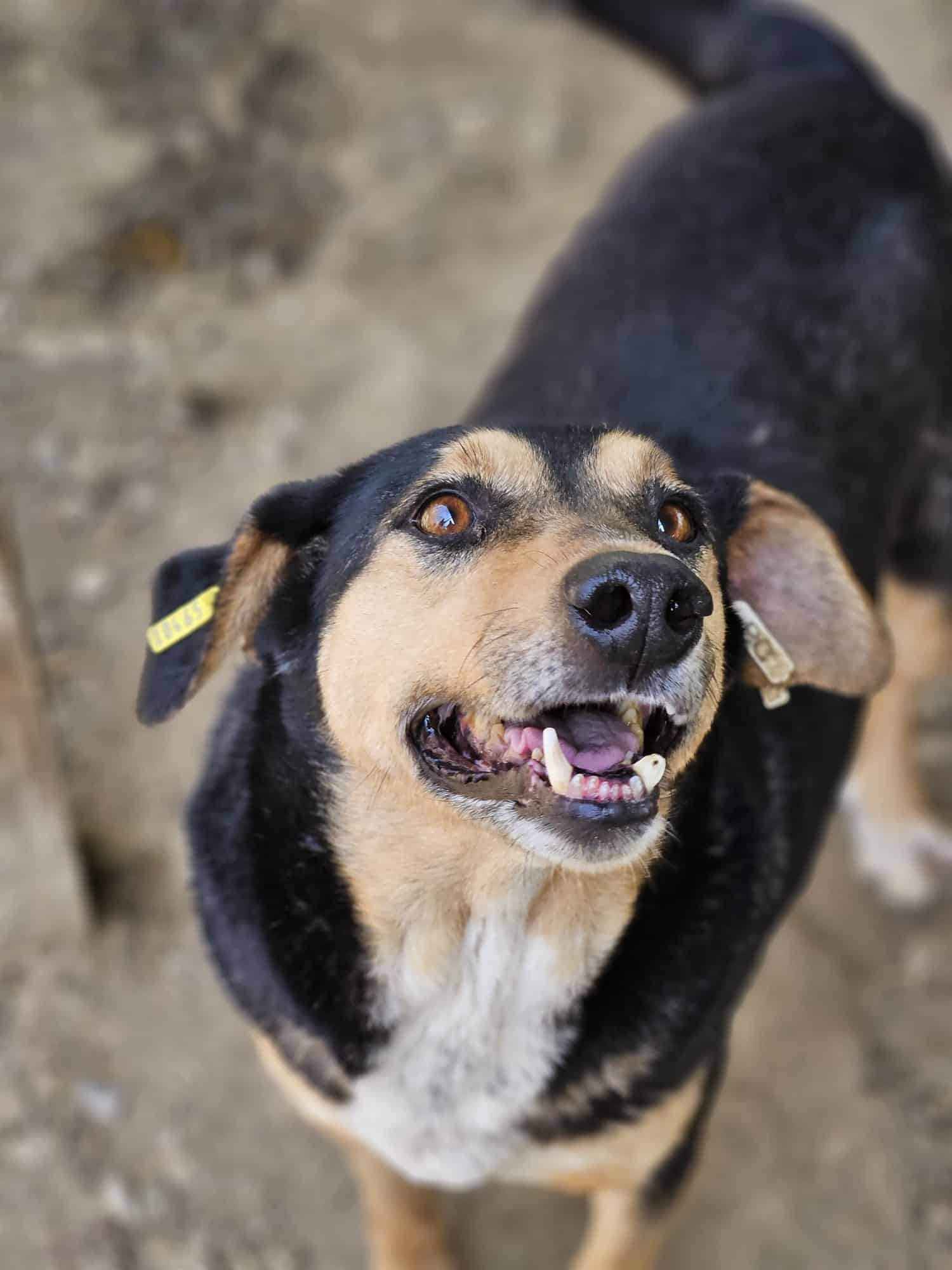 SOLO freute sich sehr über unseren Besuch und war sofort bei uns. Gerne nahm er unsere Leckerchen und wir konnten ihn dabei auch vorsichtig an der Schnauze berühren. In einer anderen Umgebung sollte dieser letzte Schritt des fehlenden Vertrauens bald überwunden sein.