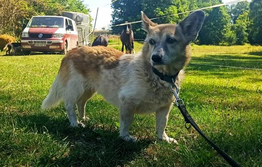 Sona ist sehr verträglich mit Artgenossen und anderem Getier. Sie fährt problemlos im Auto mit und kann nach einer angemessenen Eingewöhnungszeit auch alleine bleiben. Auch an der Leine läuft Sona mittlerweile super mit.