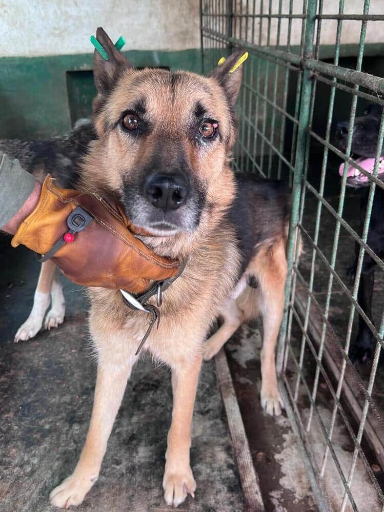 Dieser tolle Schäfi-Mix Rüde haben wir im Vetkennel kennengelernt. Er trägt ein Halsband, wahrscheinlich hatte er mal einen Besitzer. Es ist nicht zu übersehen, dass dieser Hund viel zu dünn ist.