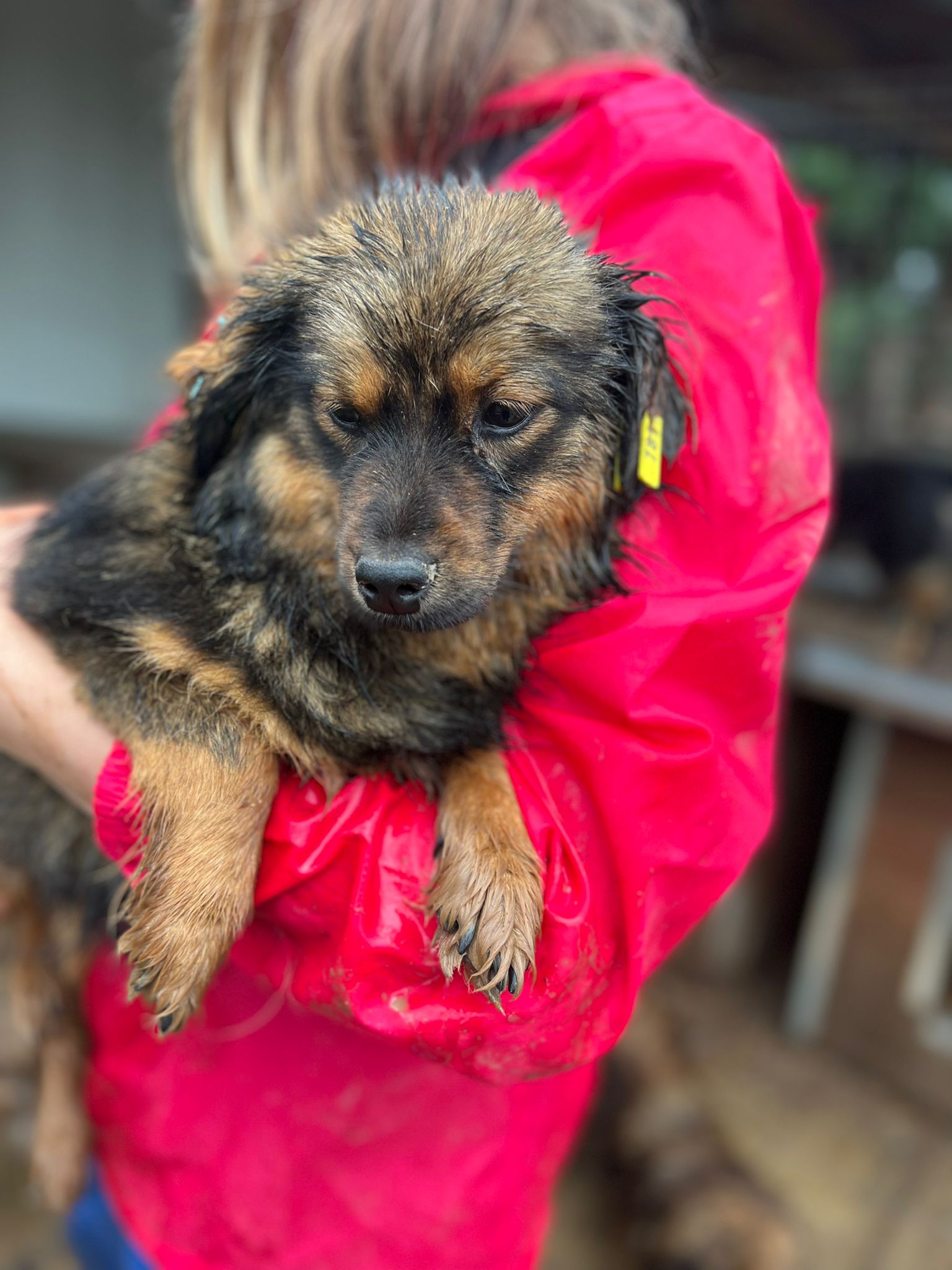 Hündin, kastriert geb. ca. 2020/2021 Größe: ca. 30-35cm hustet, in Behandlung (05/2022)
