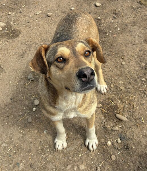 Die zuckersüße SOUL zeigte sich bei unserem Besuch neugierig und aufmerksam. Sie beobachtete das Geschehen ganz genau, schnupperte interessiert an uns und nahm schließlich auch Leckerlie direkt aus der Hand – ruhig und ohne Hast. Unter leichter Bedrängung ließ SOUL sich schließlich gut anfassen, wobei sie zwar vorsichtig, aber keinesfalls abwehrend reagierte. Insgesamt macht sie einen entspannten Eindruck und scheint in ihrer Kennel-Konstellation gut zurechtzukommen. SOUL wirkt integriert und zeigte eine schöne, stabile Figur – die Futterproblematik scheint sich erfreulicherweise gelöst zu haben. Für die liebe Hündin wünschen wir uns nach dieser schweren Zeit im tristen Shelter, dass sie endlich gesehen wird und ihre Chance auf ein liebevolles Zuhause erhält. Von einem aufgeschlossenen und freundlichen Ersthund würde sie sicher profitieren.