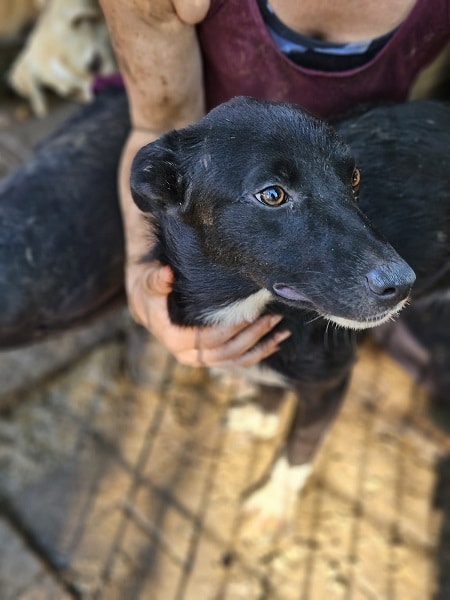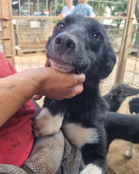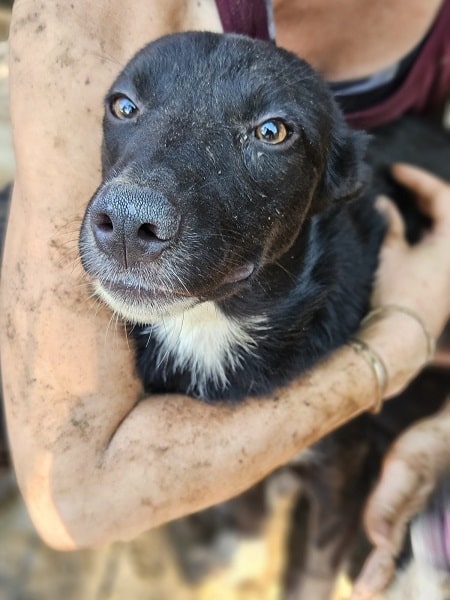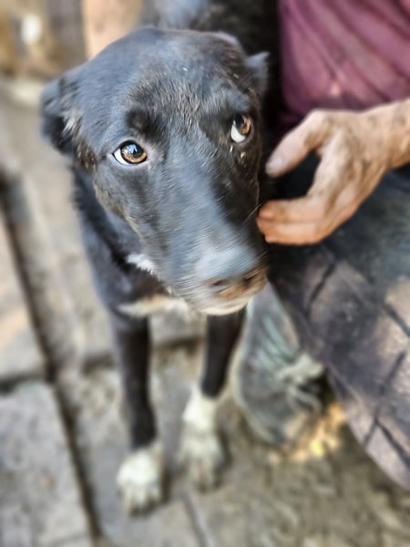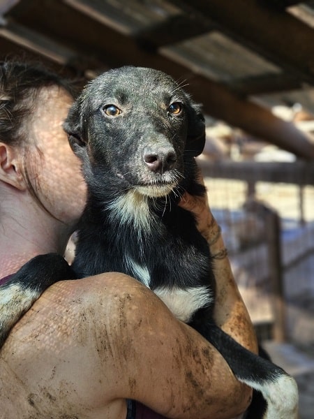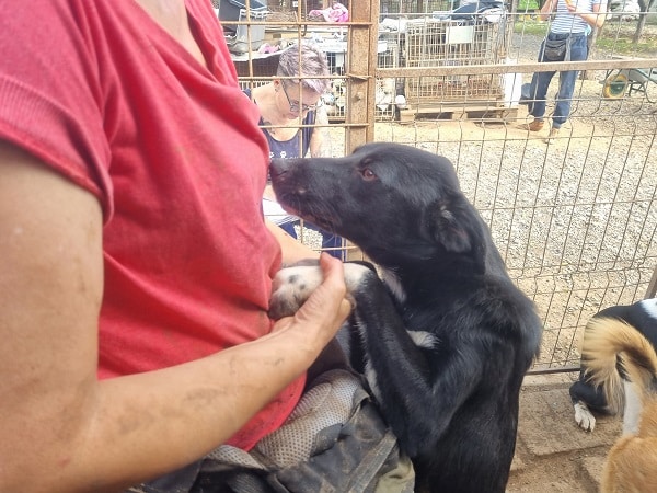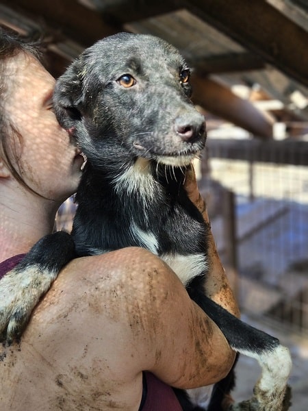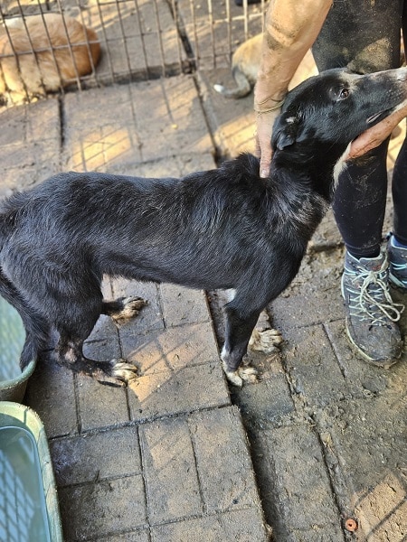 SOY ist eine sehr menschenbezogene Hündin, sie nahm zwar unsere Leckerchen gern entgegen, aber eine runde Kuscheln fand sie deutlich besser. Sie ist bei ihrem schon schlanken Körperbau, aktuell auch noch zu dünn.