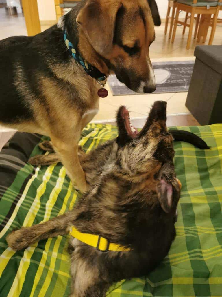 Neben kuscheln ist spielen mit unserem Rüden seine Lieblingsbeschäftigung, hierbei kann er sich gut unterordnen und erkennt die Signale des Spielkameraden und lernt schnell. Ebenso kann er nach dem spielen gut zu Ruhe kommen. Futterneid ist bisher keiner vorhanden. Die anfängliche getrennte Fütterung konnte sehr schnell umgestellt werden.