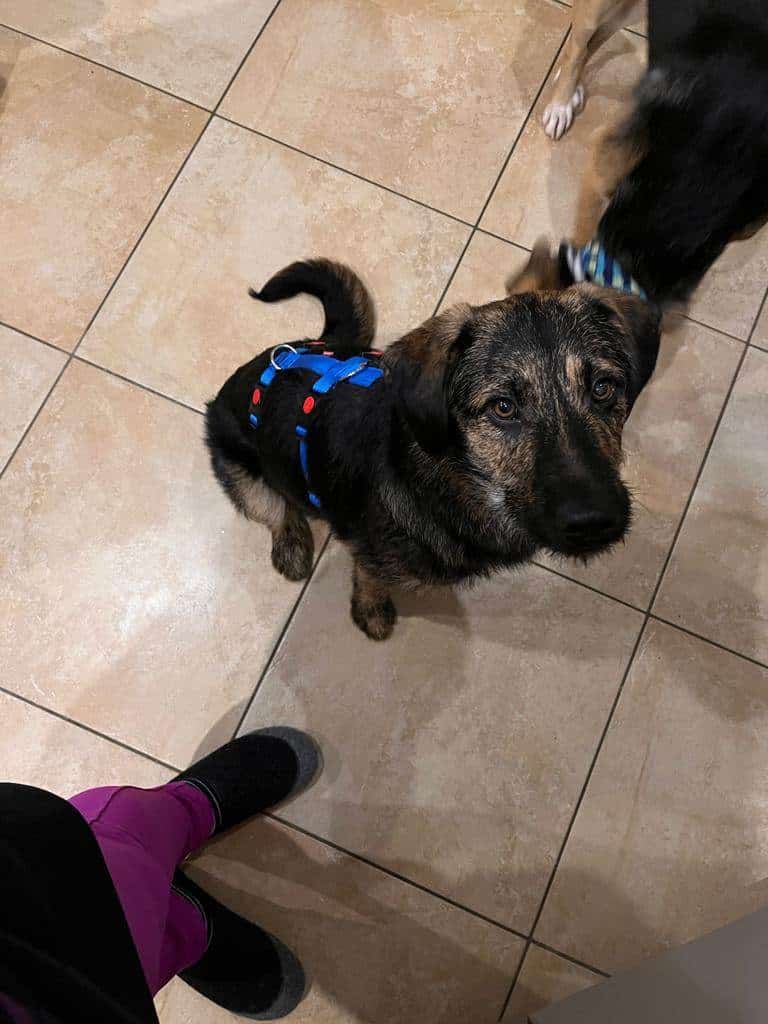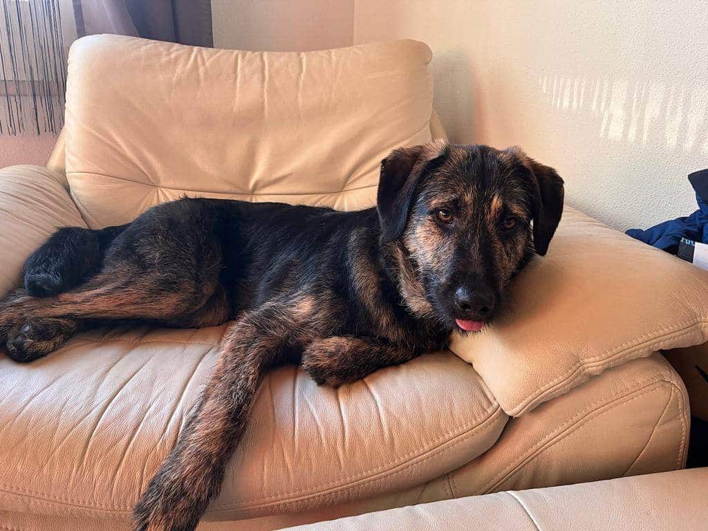 Man merkt ihm nicht an, dass er in einem Tierheim in Rumänien aufgewachsen ist, wo nicht viel Kontakt zu Menschen herrschte. Er ist allen Zweibeinern gegenüber äußerst freundlich. Besuch wird erstmal beschnuppert – 30 Sekunden kritisch, aus 1,5 m Entfernung beäugt und dann gibt’s aber kein Halten mehr. Teenager, Kinder und Kleinkinder hat er auch schon kennengelernt und die findet er alle toll. Der Kontakt zu Kleinkindern muss natürlich von uns Erwachsenen gemanagt werden, da er sehr verspielt ist und mit seiner Kraft den Kleinkindern gegenüber nicht richtig umzugehen weiß.