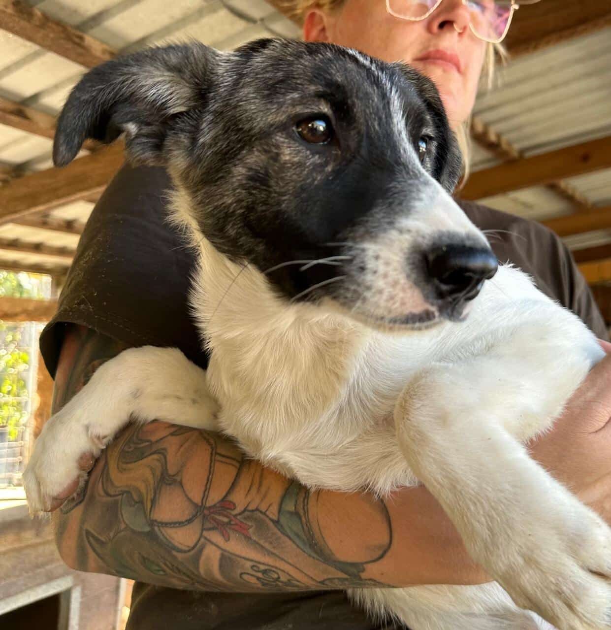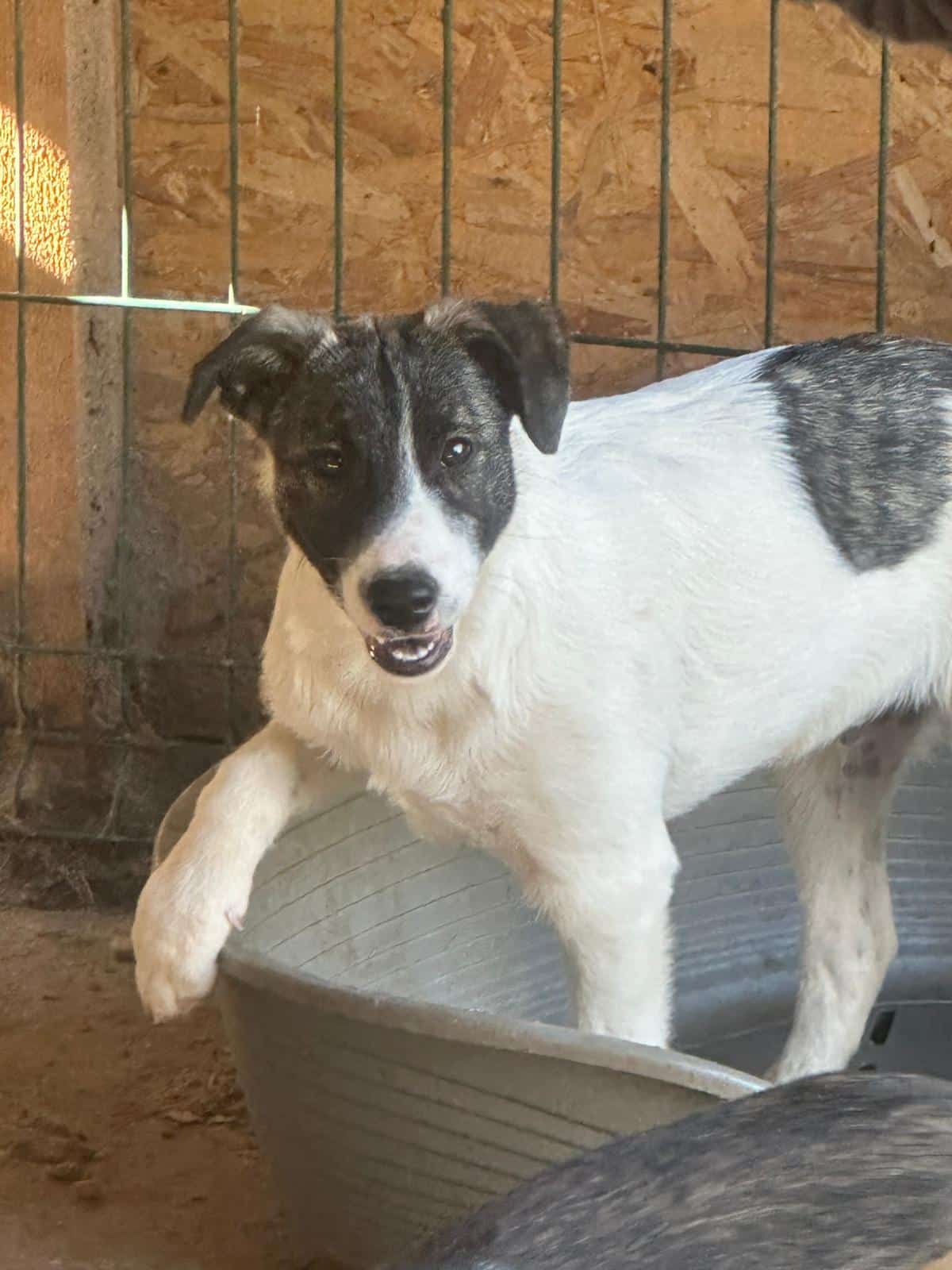 SPUNK hat sich sehr zurückgezogen. Er zeigt sich scheu, meidet den direkten Kontakt und lässt sich derzeit nicht anfassen. Die meiste Zeit verbringt er still in seiner Hütte. Er braucht einen ruhigen Ort und Menschen mit Hundeerfahrung, die ihm mit Geduld und Verständnis begegnen. Mit Zeit, liebevoller Begleitung und einem sicheren Zuhause hat Spunk die Chance, Vertrauen zu fassen und sich langsam zu öffnen.
