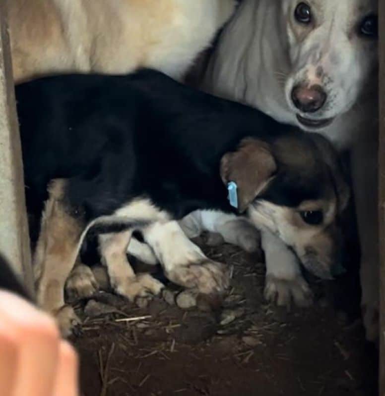 Dieser winzige Zwerg hielt sich während unseres Besuchs ausschließlich in der sicheren Hütte auf und versteckte sich hinter den anderen Hunden. Zu gruselig war SPUTNIK unser Besuch – wusste er doch nicht, dass wir mit guten Absichten wir zu ihm kamen… Leckerlie wollte er leider nicht nehmen und bei weiterer Kontaktaufnahme und dem Versuch, ihn anzufassen, fiepte er und wich aus. Doch wer kann es ihm verübeln? Noch nie hat SPUTNIK jemand gezeigt, was intensive Nähe und Zuwendung sind. Als so kleiner Hundemann ist die große Welt mit den Zweibeinigen Bewohnern gleich doppelt so unheimlich…