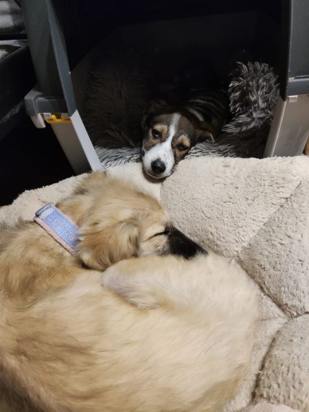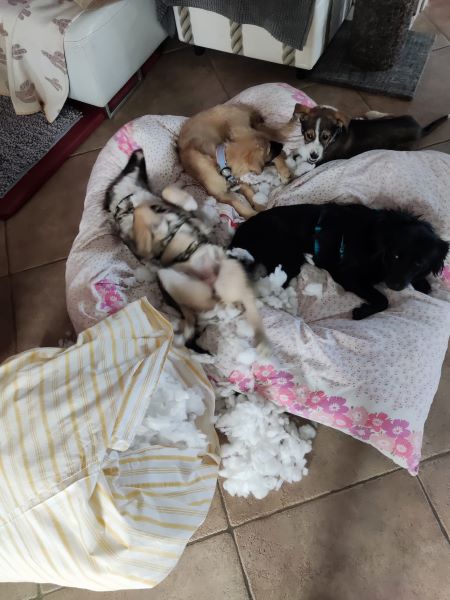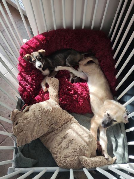 Hier bei uns sind Sofa und Bett tabu; gekuschelt wird natürlich trotzdem und Stacy ist vorne mit dabei, wenn es die Zeit dafür ist. Stacy ist auf dem guten Weg stubenrein zu sein, man muss aufmerksam und schnell sein. Sie kann im Auto entspannt mitfahren, ist im Home Office ruhig dabei, schläft nachts durch. Alleine bleiben im Rudel klappt eine kurze Weile, ganz alleine mag Stacy noch nicht bleiben.