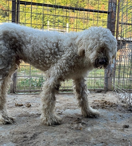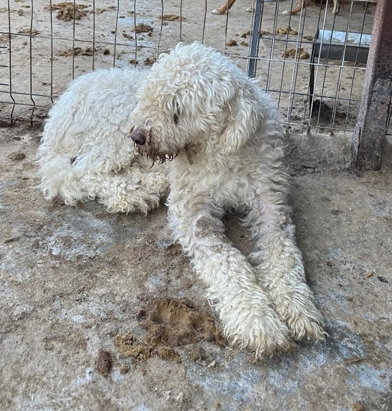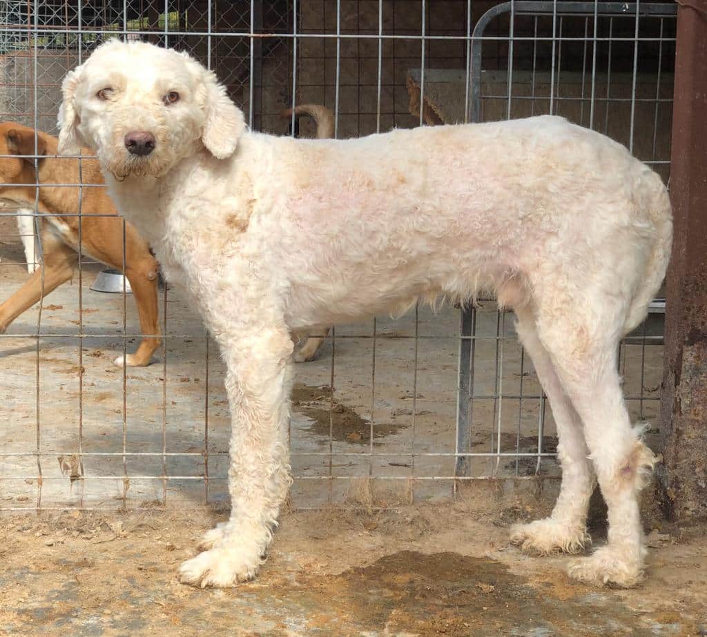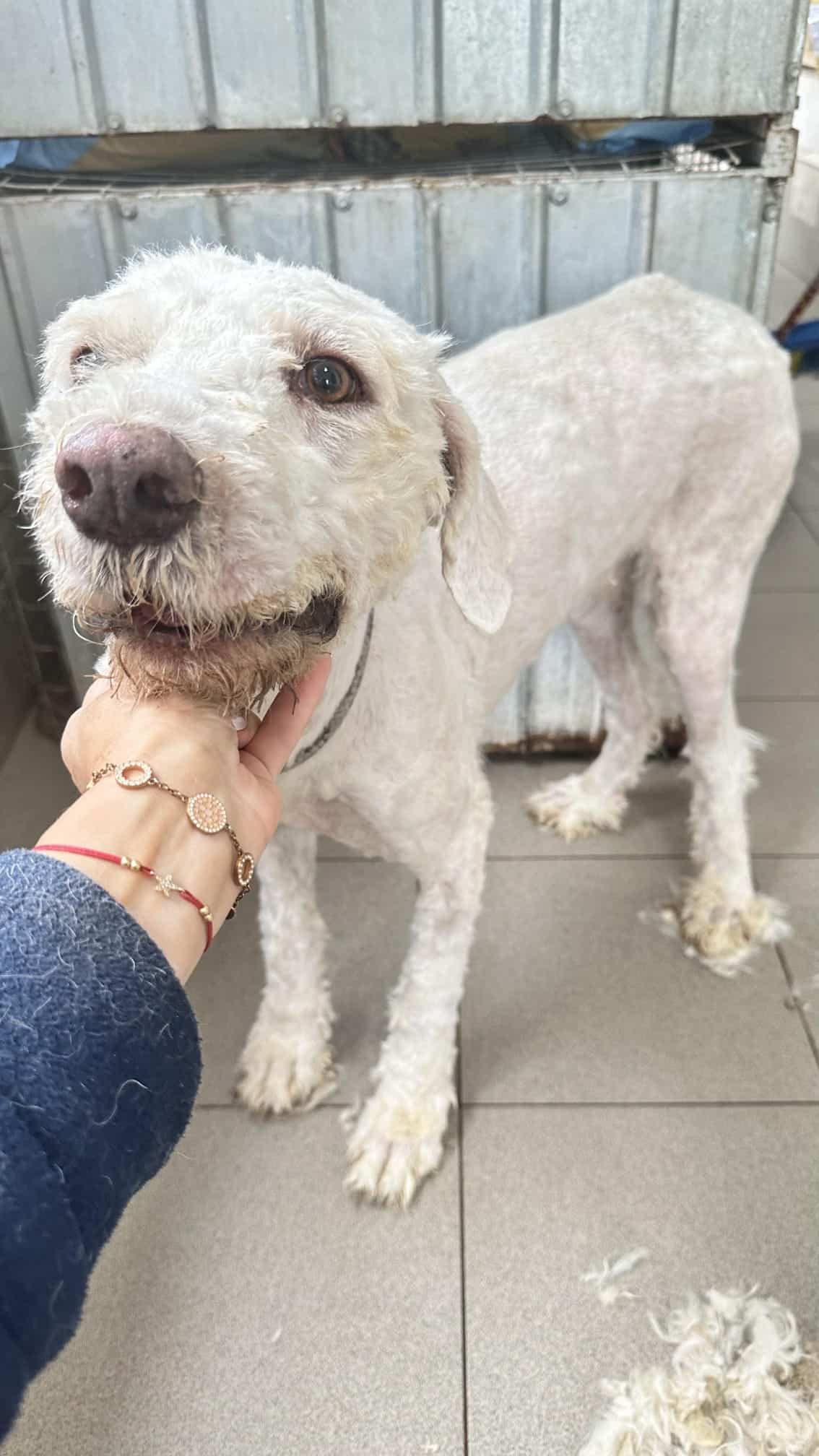 Update 09/23: Der liebe Opa Stromboli hat sich sehr positiv entwickelt. Er zeigt sich freundlich, gut anfassbar und zutraulich und ist auch eher ein ruhiges Kerlchen. Da er sich so gut entwickelt hat, ist er wieder zurück im Shelter und nicht mehr im Open Shelter. Stromboli wurde geschoren. Durch das Entfernen des langen Fells wurde die Belüftung der Haut verbessert, was das Risiko von Hautirritationen und Infektionen verringerte. Er wirkt zufriedener damit. Stromboli sucht dringend ein schönes Zuhause, wo er seine positive Entwicklung fortsetzen kann.