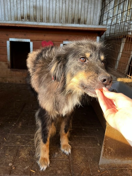 STRUPPI freute sich sehr über unseren Besuch. Gerne nahm er unsere Leckerchen und war immer in unserer Nähe. Als wir uns mit den anderen Hunden beschäftigten, stuppste er uns immer wieder an, in der Hoffnung weitere Leckerchen zu bekommen. Ein netter Kerl, der in einer anderen Umgebung sicher noch gut auftauen sollte.
