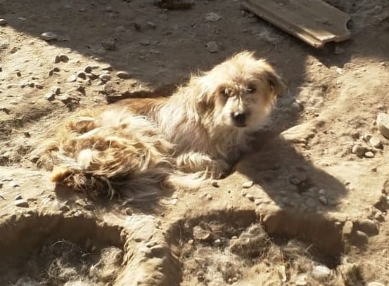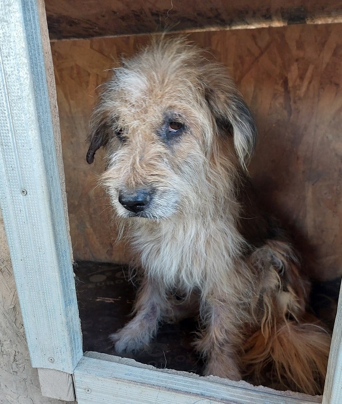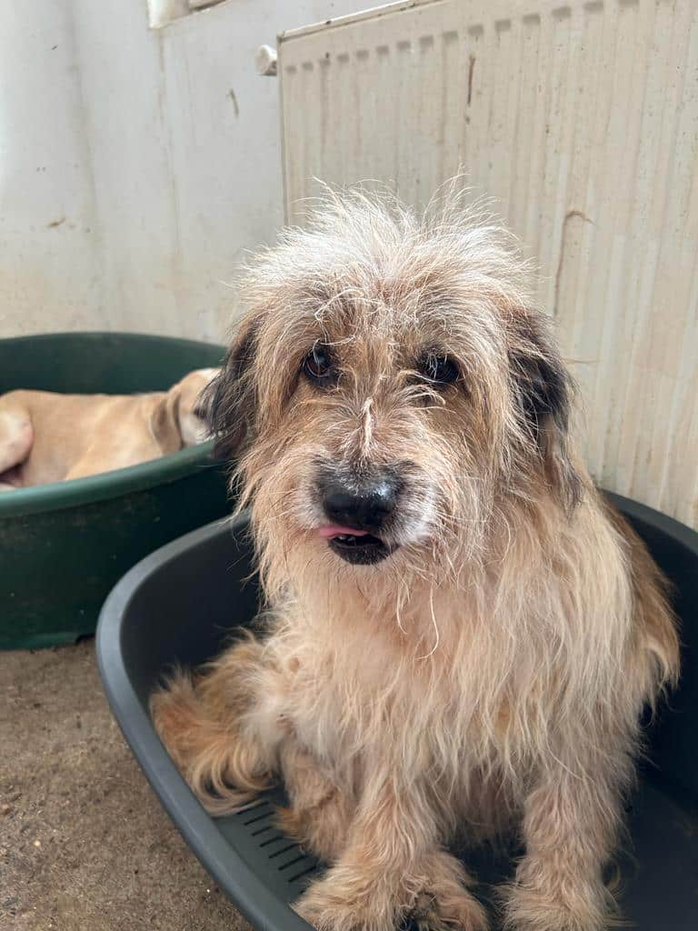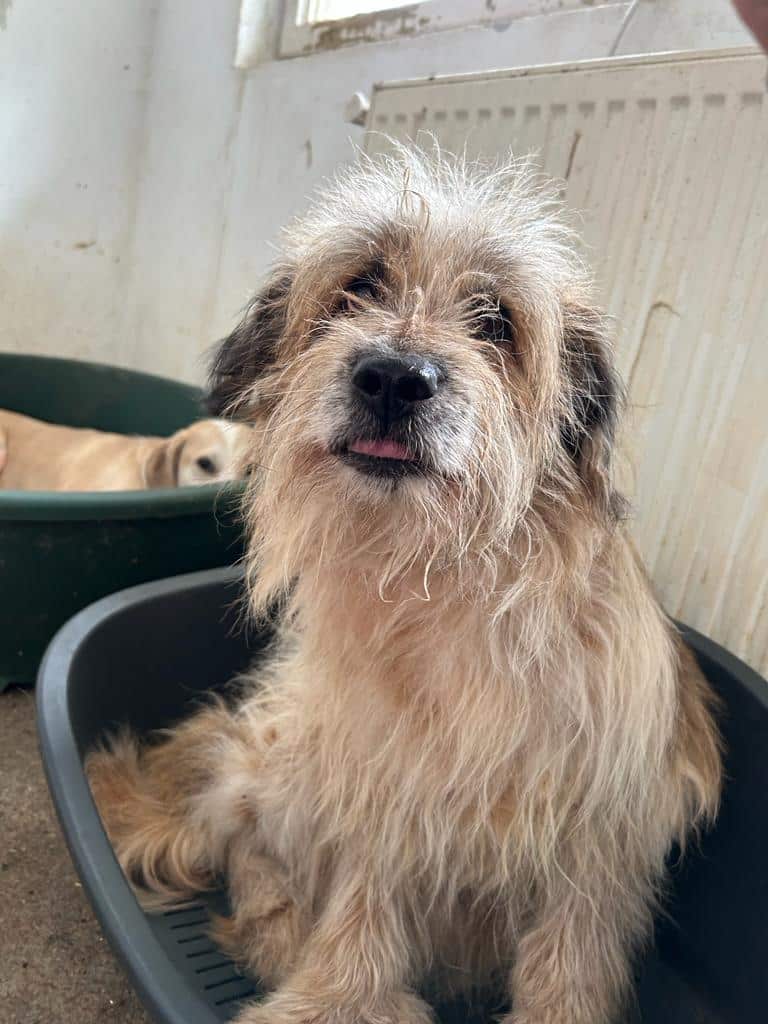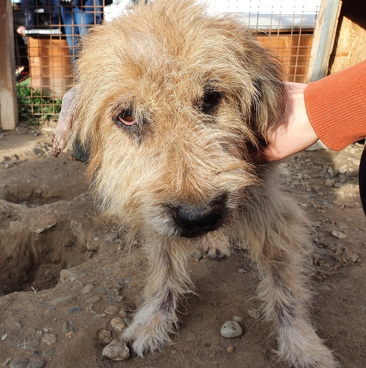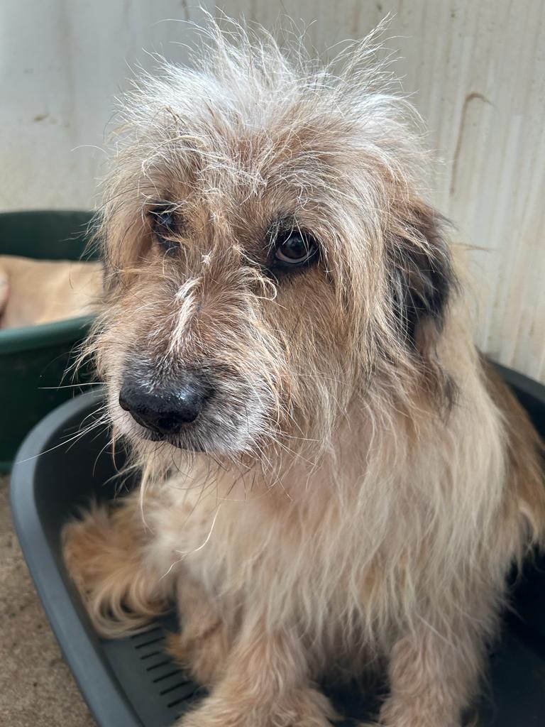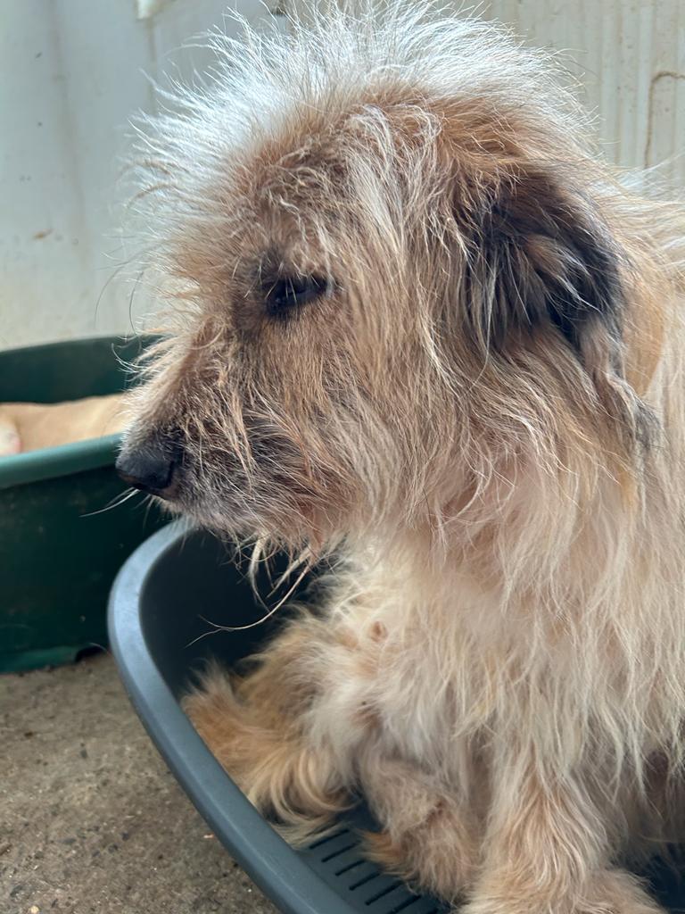 STRUWWEL ist gut anfassbar, lieb und genießt Streicheleinheiten. Leider hat er noch immer Hautprobleme und sollte dringend ausreisen.