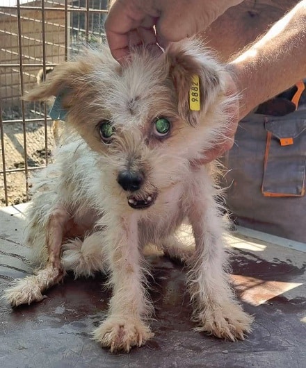 Rüde, kastriert geb. ca. 2017 Größe: ca. 30cm dünn, fast blind (08/2023)