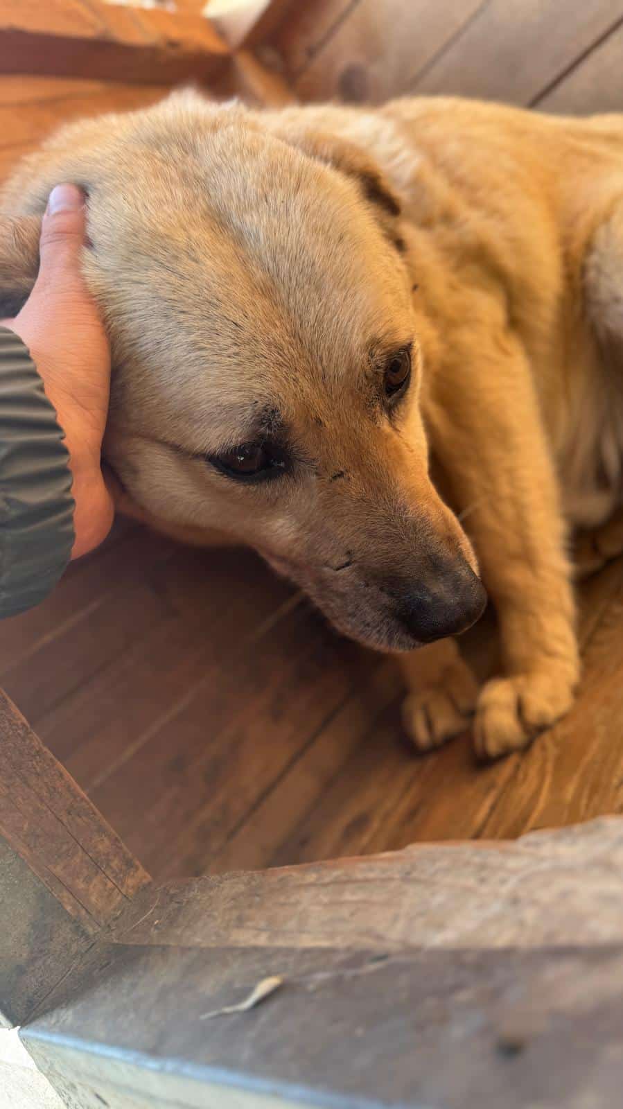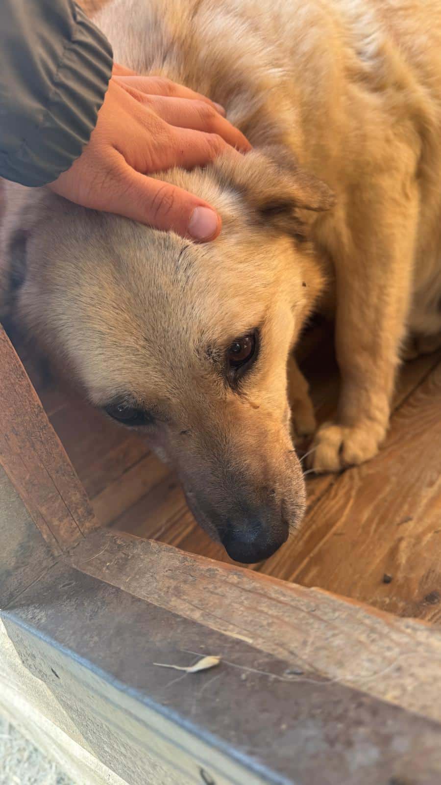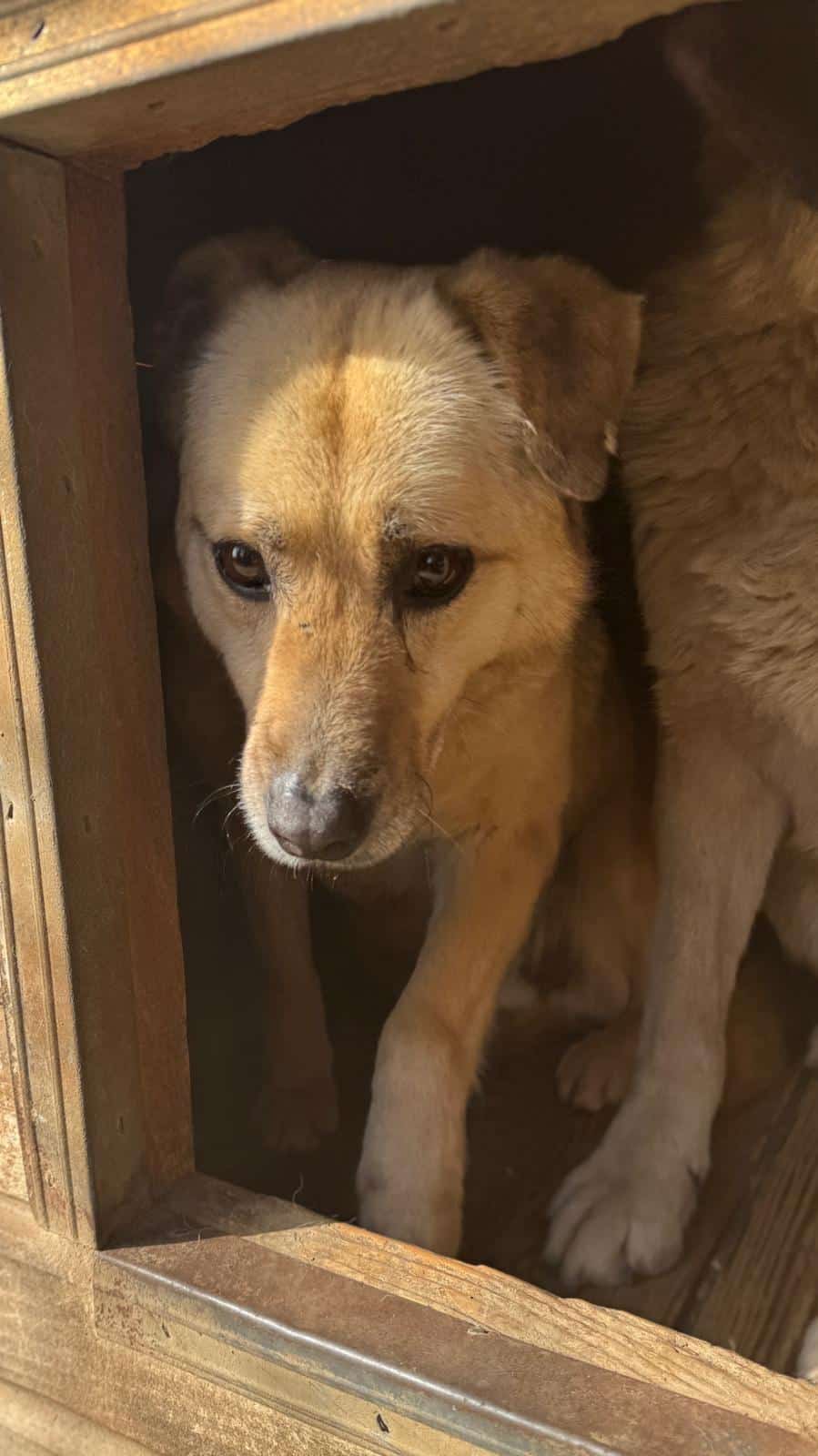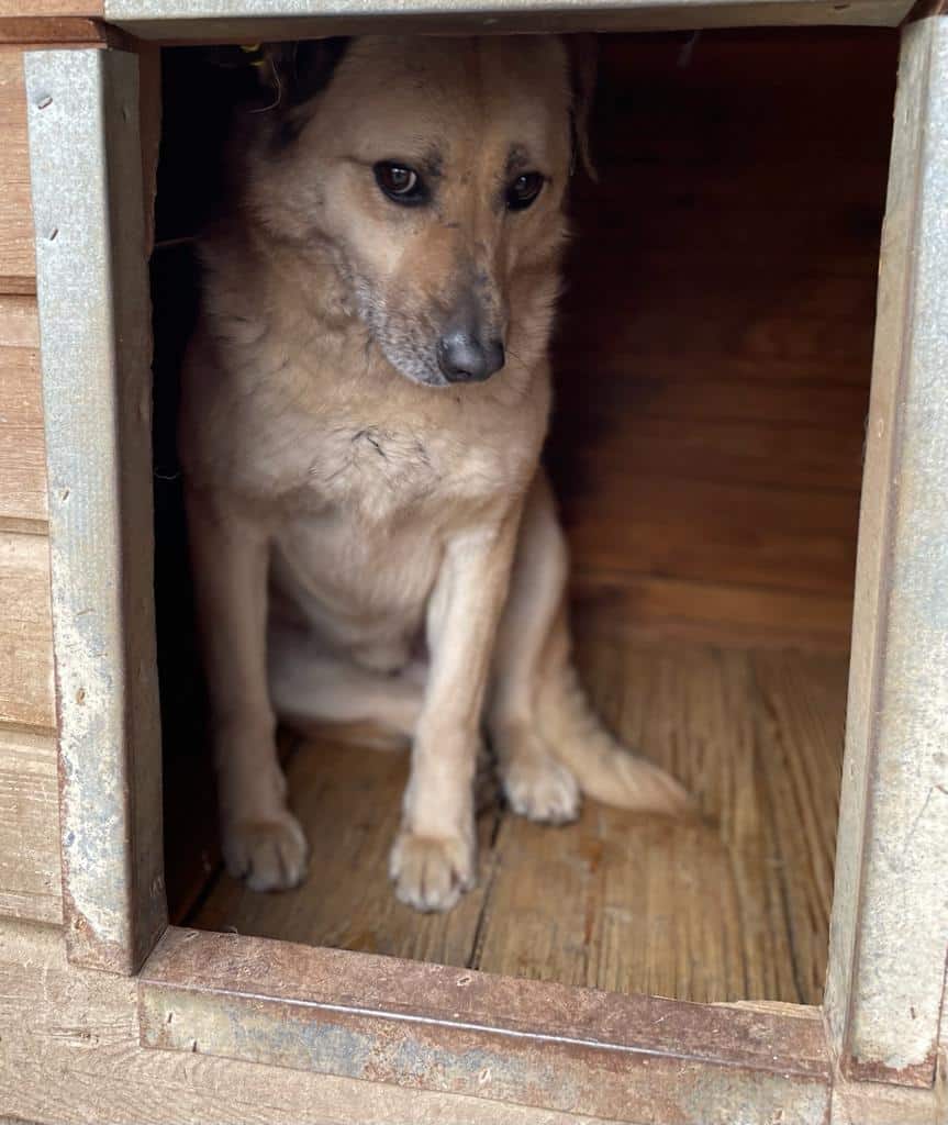 Sechs Jahre muss STUBBS jetzt schon im Shelter ausharren. Er ist weiterhin unsicher und flüchtet vor uns, aber diesmal konnten wir ihn gut streicheln. Wir haben ihm den Fluchtweg aus der Hütte versperrt und er ließ sich dort problemlos anfassen und zeigte kein Abwehrverhalten. Wir denken, dass er den Kontakt mit Menschen einfach nicht so kennt. Wir würden uns sehr wünschen, dass STUBBS nach so vielen Jahren nun endlich von erfahrenen Menschen gesehen wird und seine Chance bekommt.
