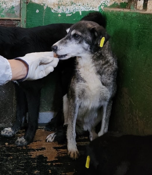 Wesen & Zutraulichkeit (Character & Trustworthiness) | freundlich (friendly), nimmt Leckerchen (takes goodies), letzter Vertrauensschritt fehlt (last step of confidence is missing), benötigt Eingewöhnungszeit (takes time to settle in), unsicher (insecure), gerne Zweithund (happy second dog), zurückhaltend (hesitant), weicht aus (avoids contact) |