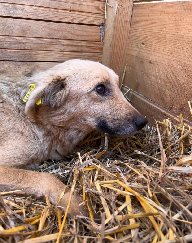 Die nette SUKI war bei unserem Besuch (12/2023) noch recht neu im Shelter und mit der Situation noch etwas überfordert. Leckerlis nahm sie keine, und wenn wir uns ihr näherten, wich sie aus. Unter Bedrängung konnten wir sie in der Hütte aber gut anfassen. Abwehrverhalten zeigte sie nicht.