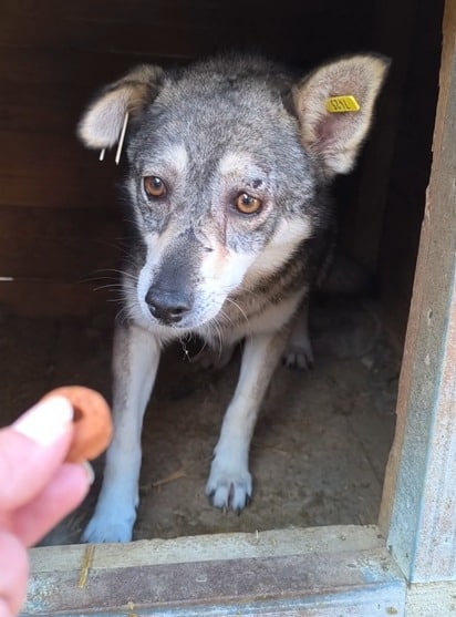 SULANA ist die Kleinste in ihrem Zwinger, scheint aber mittlerweile gut zurecht zu kommen. Wir konnten nicht beobachten, dass irgendein Hund sie gemobbt hätte. Nur leider hat sich an ihrem Zustand nichts geändert. Sie hat immer noch Angst vor uns und geht uns aus dem Weg.