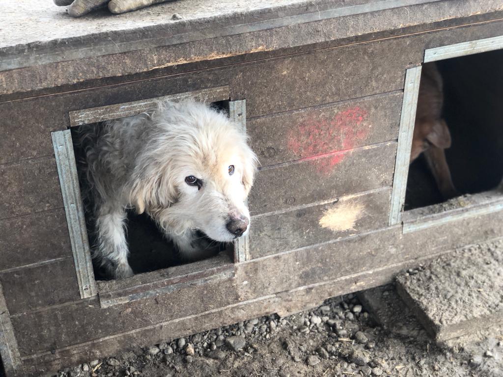 Nach der Bedrängungsaktion zeigte er sich offen für unsere Leckerchen und nahm sie ruhig und gerne aus den Fingern. Mit den Leckerchen konnten wir SUMAQ sogar aus der Hütte locken. Sein Gangbild ist normal. Lediglich etwas wenig Muskulatur, was für Shelterhunde die Regel ist.