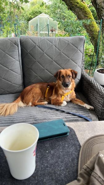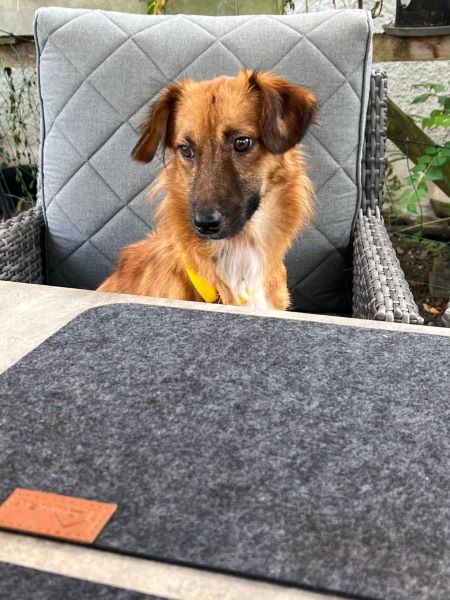 Sobald es zur Essenvorbereitung geht, sause ich wild hin und her, und kann es gar nicht abwarten die Nase in die Schüssel stecken zu dürfen. Im Tierheim kam ich nicht gut an das Futter und dadurch bin ich sehr dünn. Wer kann es mir also verdenken, dass ich mich jetzt immer so sehr auf meinen Napf freue!? Den Dreh mit dem Geschäftchen draußen verrichten habe ich im Großen und Ganzen schon heraus. Ich lebe hier in einem gemischten Rudel, Jung und Alt, Männchen und Weibchen, sowie klein und groß zusammen. Ich wünsche mir, dass bereits ein Ersthund im neuen zu Hause ist, der mir Halt gibt. Allein bleibe ich auch schon gut im Rudel. Für Leckerchen bin ich sehr empfänglich. Ich bin auch keine Kostverächterin und inspiziere schon einmal gerne den Esstisch, wenn vergessen wurde den Stuhl ranzurücken. Hier auf Pflegestelle liebe ich es abends mit auf der Couch zu sitzen und zu kuscheln.