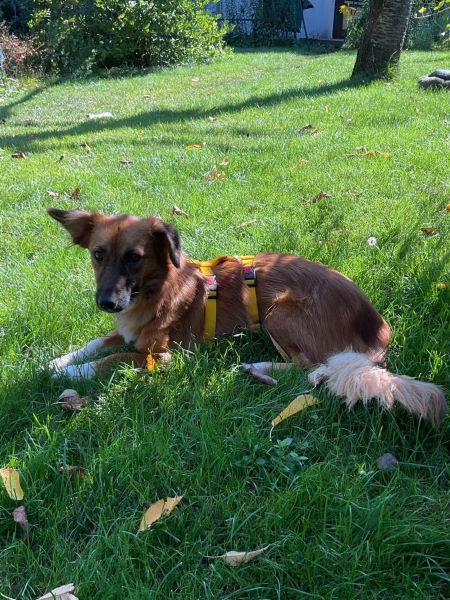Ein freudiges Wuffwauwau, Ich bin’s die Sunita. Letzte Woche durften ich das rumänische Tierheim verlassen und eine Pflegestelle in Bayern beziehen. Zunächst fand ich Menschen schon sehr gruselig, da sie aber immer etwas Leckeres zum Essen parat hatten, baute ich recht schnell Vertrauen auf und bereits am dritten Tag nach Ankunft genoss ich es gestreichelt zu werden. Fremden Menschen gegenüber bin ich sehr skeptisch und man muss mir Zeit und Ruhe geben, mich mit ihnen vertraut zu machen. Sobald ich auftaue und meine Unsicherheit über Bord geworfen habe, bin ich eine richtig lustige Ulknudel!