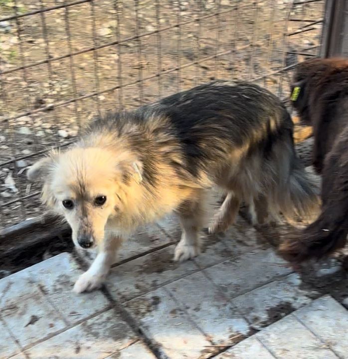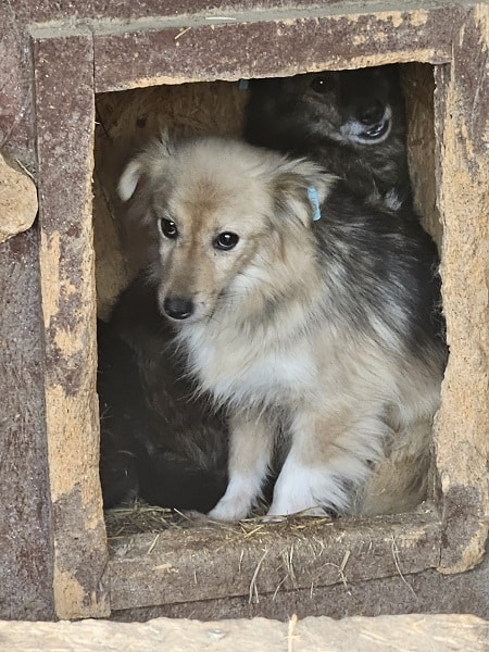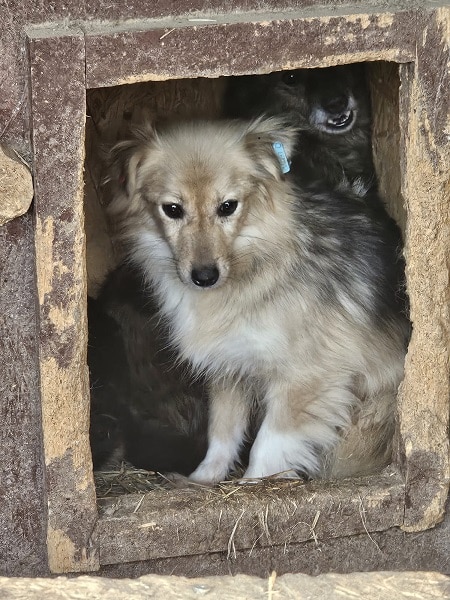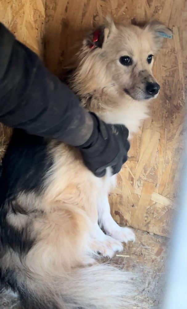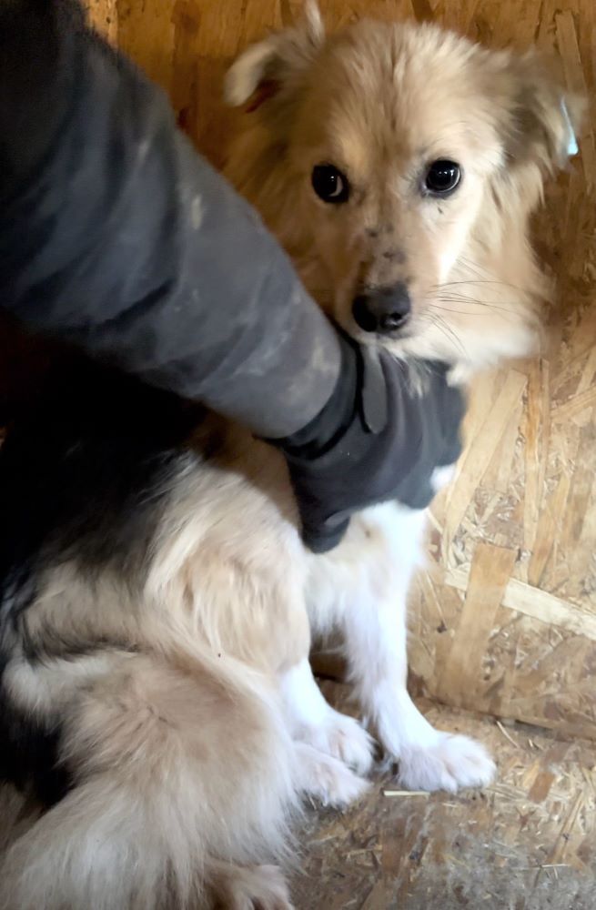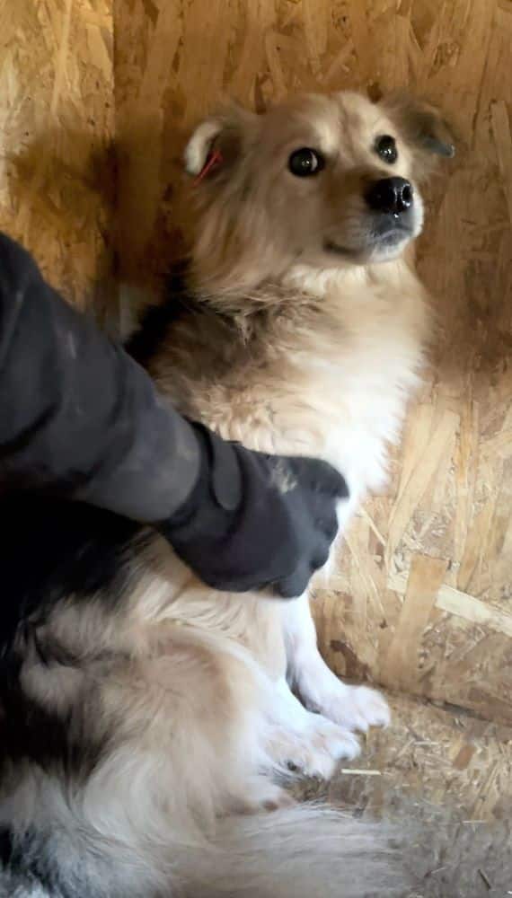 Die kleine, zierliche SUNNY zeigte bei unserem Besuch leider wieder nur eine Reaktion – Flucht… Anscheinend war es für sie bisher die einzige Lösung, um sich gruselige Menschen vom Leib zu halten. Doch wir wollten ihr dieses Mal zeigen, dass wir es gut mit ihr meinen und zie nicht mehr flüchten muss. Es gelang uns, sie in einer Hütte zu bedrängen und zu streicheln. Sie ließ uns sogar ihr Bäuchlein abtasten um endlich Gewissheit zu haben – Sie ist eine Hündin. Die kleine Maus ist dabei nicht erstarrt sondern hat sich durchgehend nach einem möglichen Ausweg umgeschaut… es ist erschreckend, wie viel Angst und Freiheitsdrang in so einem kleinen Körper stecken kann. Um sich zu befreien zwickte sie uns halbherzig ins Knie, doch ernst meinen ihre Zähnchen das nicht. SUNNY ist einfach komplett überfordert mit direktem menschlichem Kontakt – vermutlich hat sie es nie kennengelernt. Wir suchen nun dringend einen liebevollen Platz bei erfahrenen Menschen, die ihr mit viel Geduld und Feingefühl zeigen, dass sie sich fallen lassen und uns Menschen vertrauen kann. Sie wird etwas Eingewöhnungszeit brauchen und sicherlich wäre ihr ein souveräner und aufgeschlossener Ersthund eine große Stütze. Mit den Hunden in ihrem Kennel zeigte sich SUNNY durchgehend verträglich.