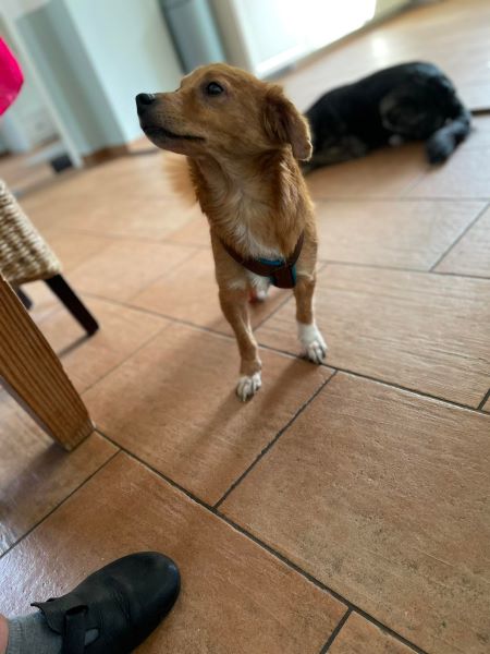 Sunny hat sich zu einem aufgeweckten fröhlichen und neugierigen Hund entwickelt. Nach und nach legt er seine Schüchternheit ab und akzeptiert auch das Pflegeherrchen immer mehr. Besucher und fremden Menschen gegenüber ist er noch sehr zurückhaltend.