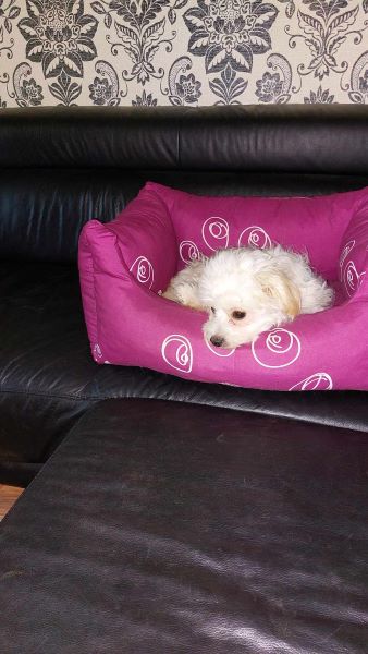 Sunnylie, die so früh ihre Mama und die Geschwister verloren hat, lebt seit dem 22. Juni auf ihrer Pflegestelle in Schleswig. Hier ist es ihr in sehr kurzer Zeit gelungen, das Herz meiner eher grantigen, alten Chihuahuahündin zu erobern, die erstaunlich bereitwillig die Funktion der „Adoptiv-Oma“ übernommen hat. Die beiden kleinen Hündinnen gehen ausgesprochen liebevoll miteinander um, und Sunnylie orientiert sich eindeutig an ihrer Artgenossin. Ich denke daher, dass sie sich auch in ihrem endgültigen Zuhause über einen weiteren Hund sehr freuen würde.