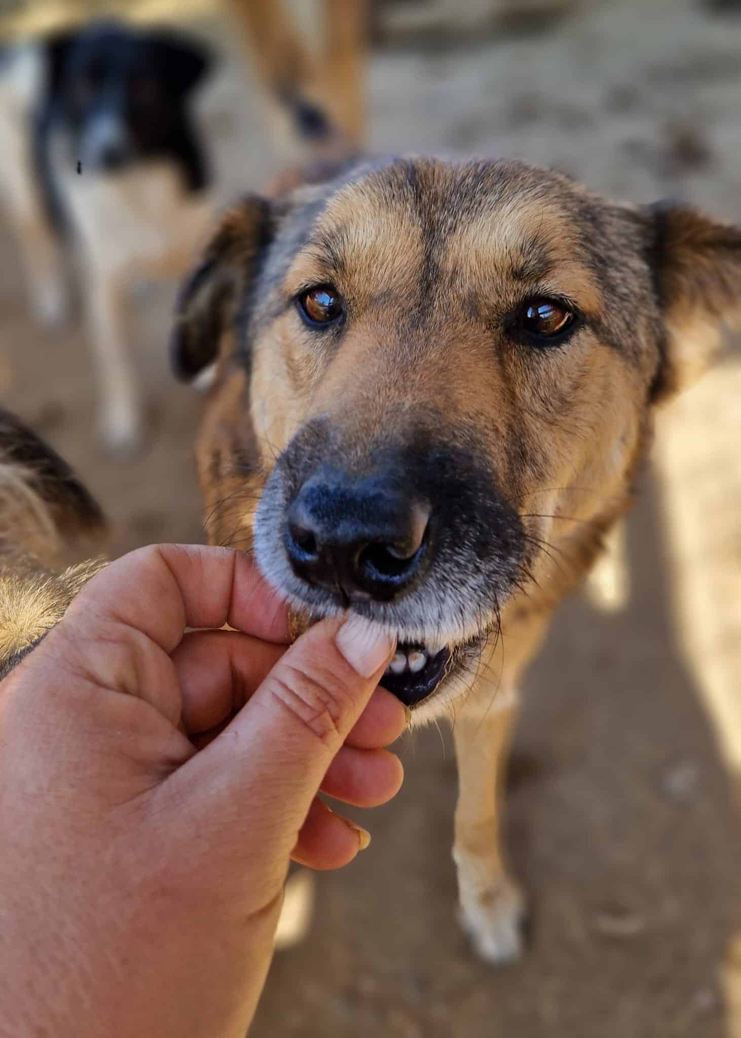 SURI ist eine ganz nette Hündin. Allerdings traut das hübsche Mädel dem Menschen nocht nicht ganz über den Weg und reagiert daher noch ein wenig unsicher, wenn wir in der Nähe sind. Sie ist jedoch nicht panisch dabei und schaut auch sehr interessiert zu uns, nur der letzte Schritt fehlt bei ihr noch. SURI kam jedoch kurz zum schnuppern und nahm auch Leckerchen aus der Hand.