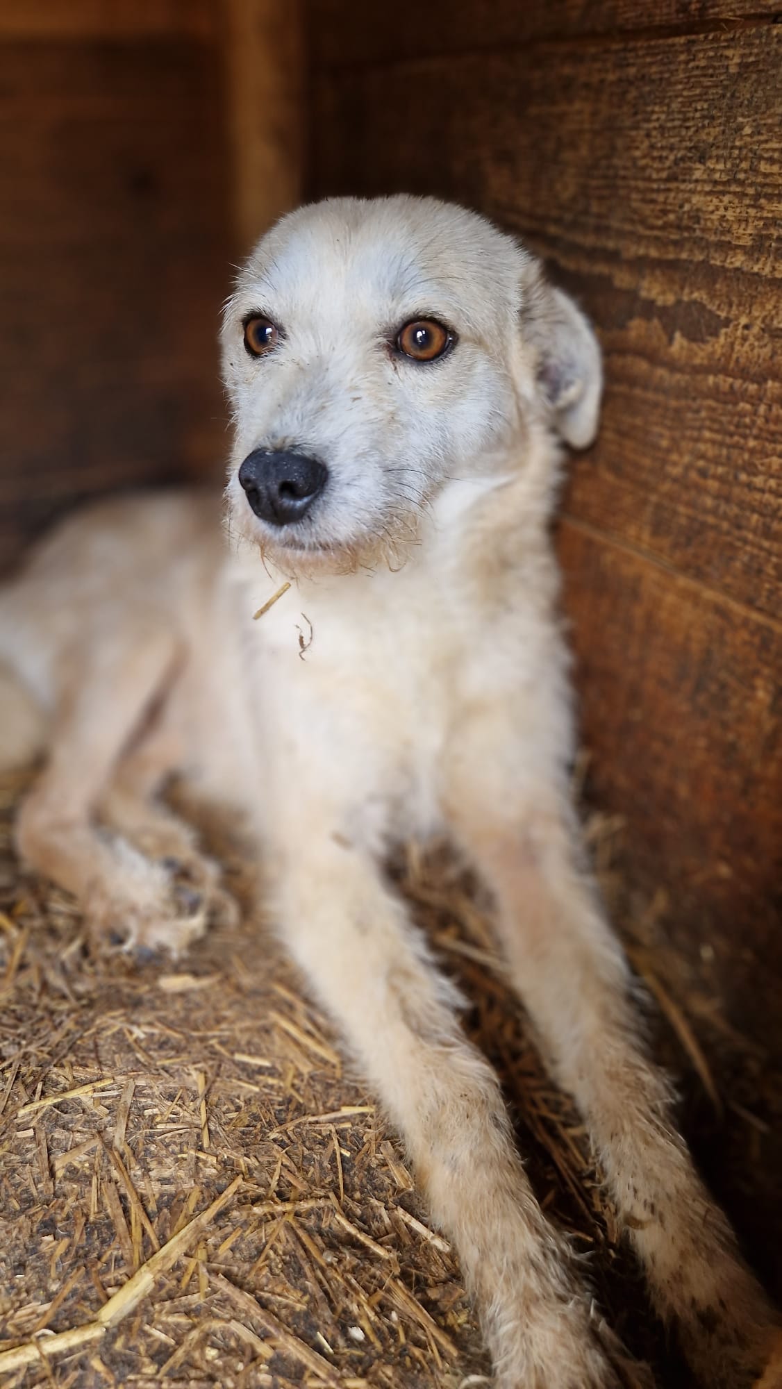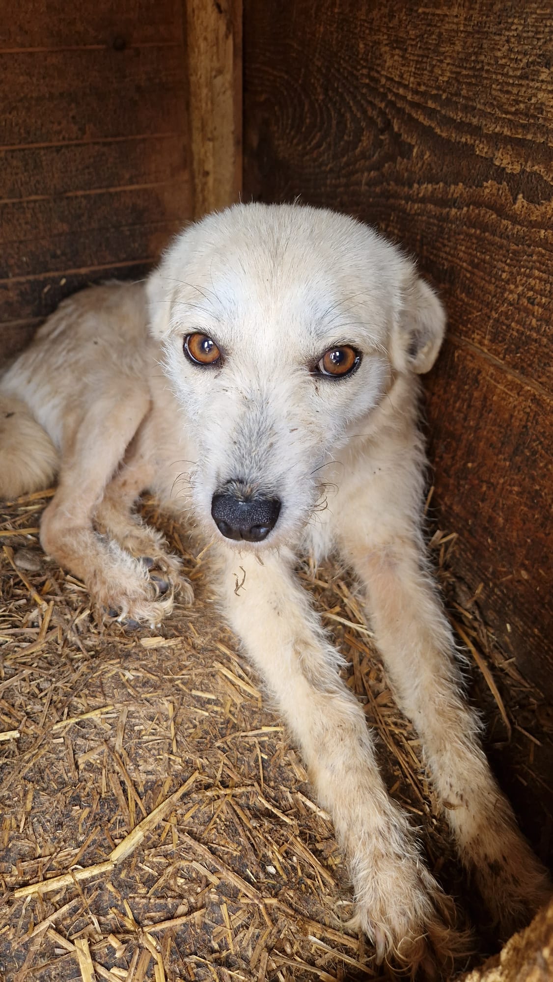 SUSE ist absolut nett und freundlich Menschen gegenüber. Sie zeigte sich sehr lieb, verschmust, überall anfassbar, und war sehr glücklich über unsere Zuwendungen. Eine wirklich tolle rührende Hündin, die unbedingt Hilfe braucht. Vor Ort fehlen die Möglichkeiten für sie.