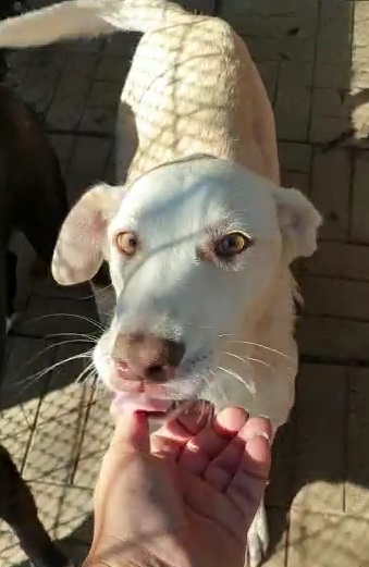 Futter aus der Hand nimmt sie gerne, beim Anfassen würde sie aber noch lieber etwas flüchten. Sie bleibt aber devot und zeigt keine Abwehrreaktion, wenn man sie doch mal etwas fixiert. Eine wunderschöne Hündin, die bei den richtigen Menschen sicher schnell auftaut. Mit anderen Hunden hat SUVY keine Probleme und zeigte sich verträglich.