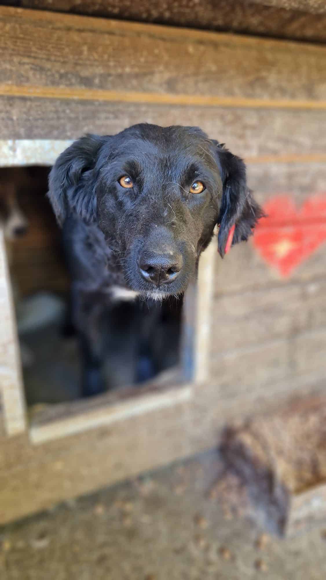 SUYANA war noch sehr unsicher uns gegenüber, nahm aber trotzdem in unserem Beisein die Leckerchen vom Hüttenrand. In ihrem neuen Zuhause ist ein souveräner Ersthund unabdingbar, der ihr die Eingewöhnung erleichtert. Wenn man sie zu sehr bedrängt, schnappt sie.