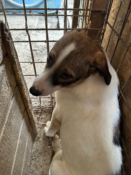 Die zarte , junge Hündin haben wir neu im Kennel angetroffen. Sie brauchte ein wenig Geduld, damit wir sie gut anfassen konnten, aber sie sprang über ihren kleinen Schatten und wir konnten Sie dann doch gut anfassen. Es ist nicht gut zu ertragen, zu sehen, wie schüchtern so junge Hunde schon sind. Kein Wunder fehlt ihr einfach der tägliche Input, Förderung, Sicherheit und Geborgenheit. Im Kennel ist sie sehr verträglich und freundlich. Ein souveräner Ersthund könnte ihr helfen, schneller aufzutauen. Sie braucht erfahrene Menschen, die wissen mit der anfänglichen Unsicherheit umzugehen. Wir hoffen sehr, dass sie bald gesehen wird, damit sie schnell die guten Seiten im Leben kennenlernt. Da sie durchaus sich alle Streicheleinheiten gefallen liess und bleibt, statt davon zu laufen, hat sie noch sehr viel Möglichkeiten sich positiv zu entwickeln.