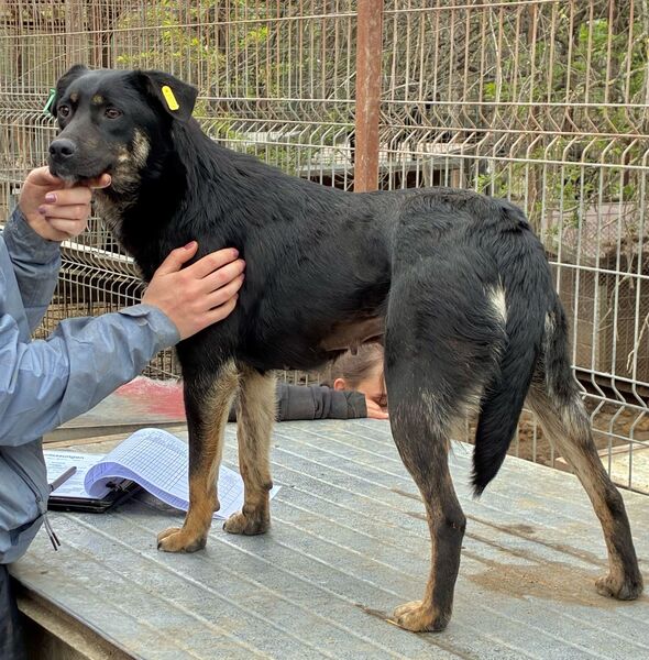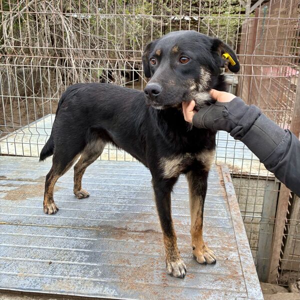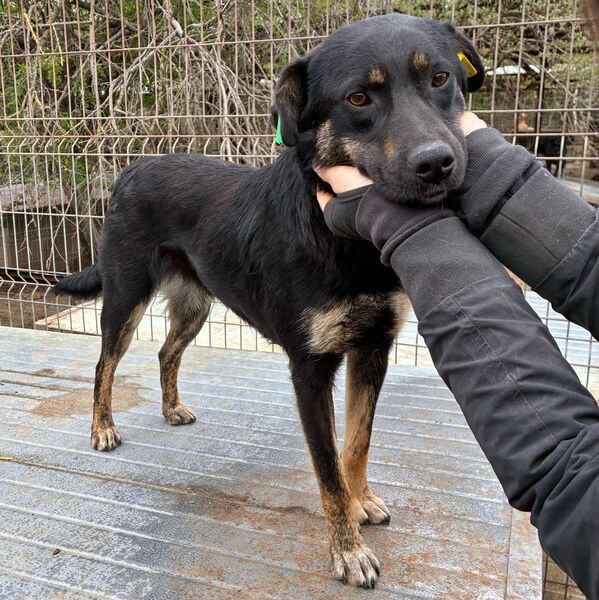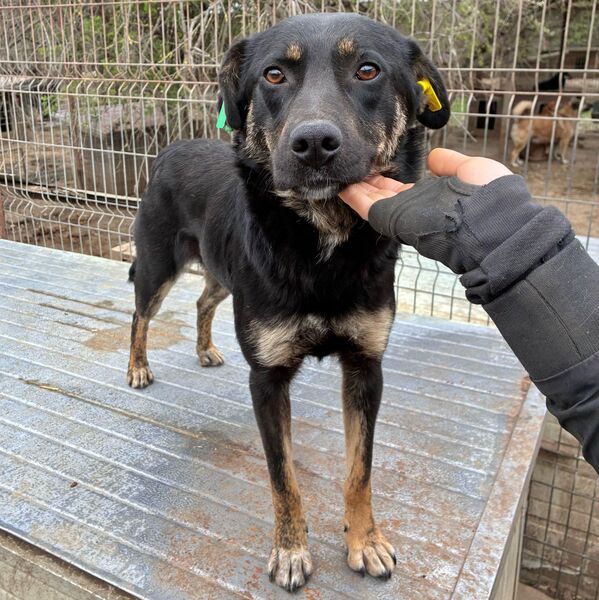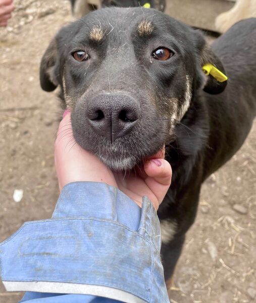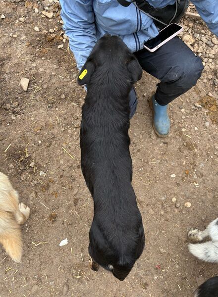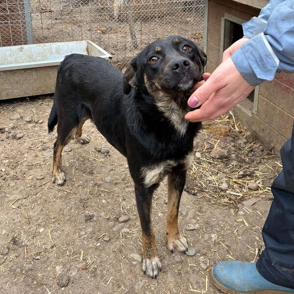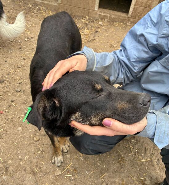 Als wir hineinkamen, begrüßte sie uns mit sanfter Freude, kam von selbst zu uns und blieb während unseres gesamten Besuchs stets in unserer Nähe. X genoss die Streicheleinheiten sichtlich und schlief dabei fast ein. Behutsam nahm sie Leckerlie aus der Hand und strahlte dabei eine feine, ruhige Wärme aus, die sofort berührt. In ihrem gemischten Rudel zeigt sie sich durchweg verträglich – ihre freundliche, ausgeglichene Art sorgt für Harmonie. Diese zarte schwarze Hündin ist kein lauter Charakter, aber eine, die man nicht vergisst. Wer X ein liebevolles Zuhause schenkt, bekommt sicher eine treue Begleiterin fürs Herz.