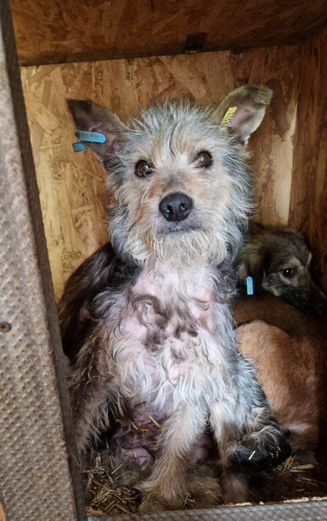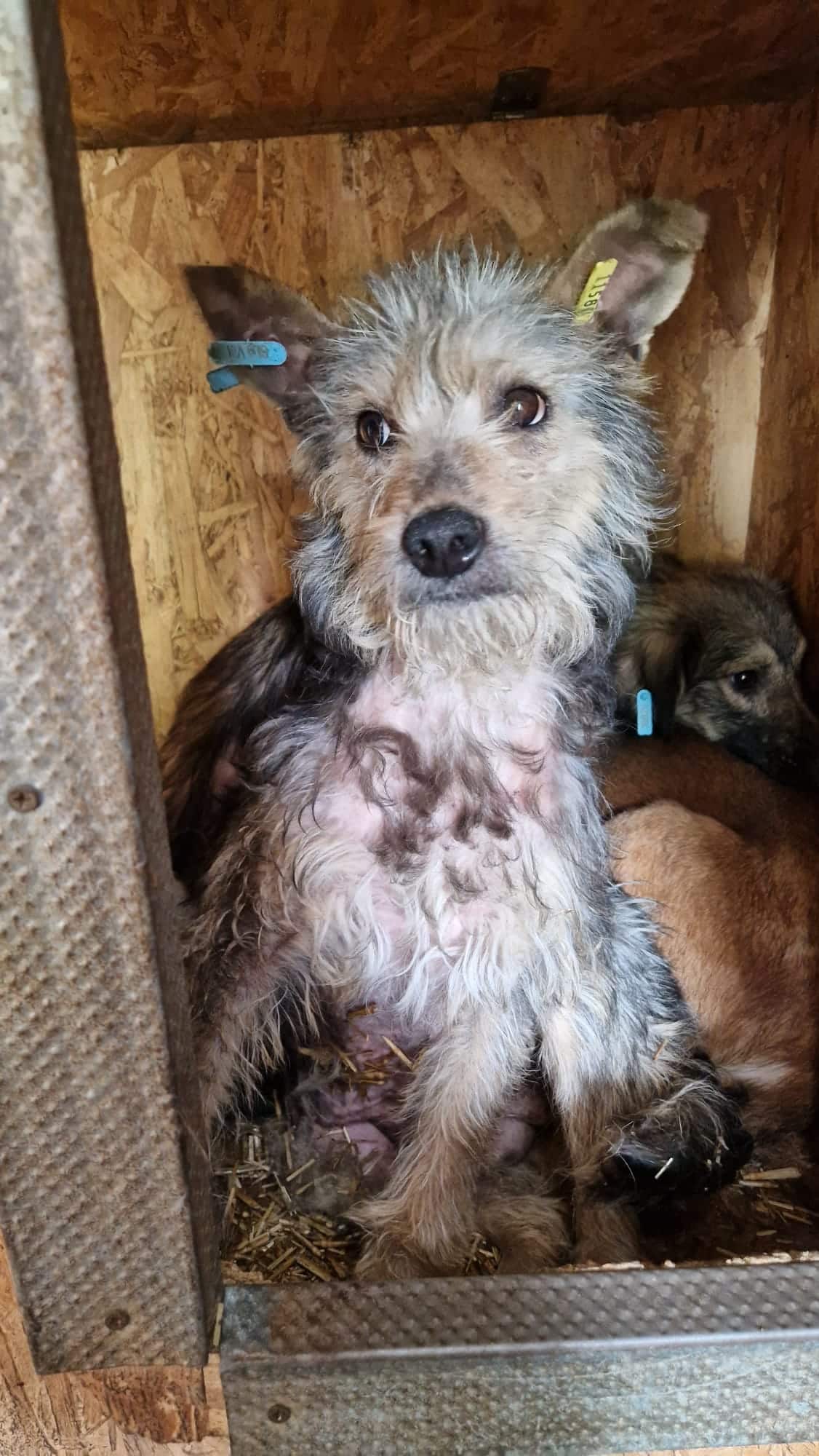 Die nette SWEA saß anfangs ausschließlich in der Hütte und wollte auch keine Leckerlis aus der Hand nehmen. Man merkt ihr an, dass sie noch nicht allzu lange in Bucov ist und die Umstände dort sie noch sehr verunsichern. Sie zeigte sich auch zurückhaltend uns gegenüber, taute aber etwas auf und wurde auch neugieriger. SWEA nahm dann mit etwas Zeit Futter aus der Hand und ließ sich auch zaghaft streicheln. Insgesamt wirkte sie auffallend ruhig, möglich, dass sie erst vor kurzem Welpen hatte und eventuell noch trauert. Ihr Gesäuge ist aktuell (Ende April 2024) sehr ausgeprägt. Mit den anderen Hunden in ihrem Kennel schien sie problemlos verträglich. Wir gehen davon aus, dass sie in einer anderen Umgebung schnell auftauen würde.