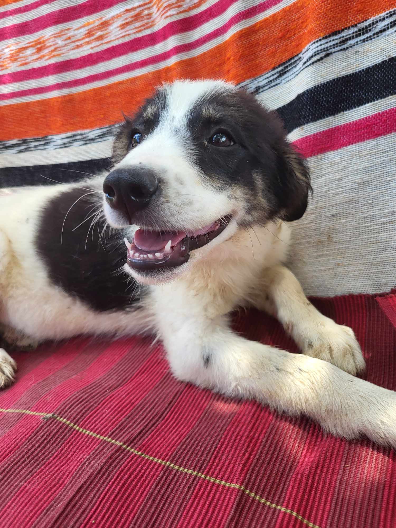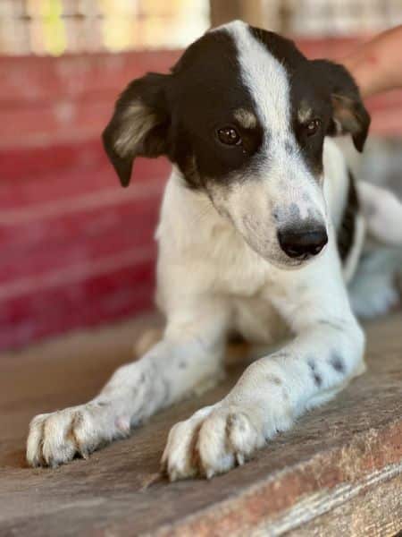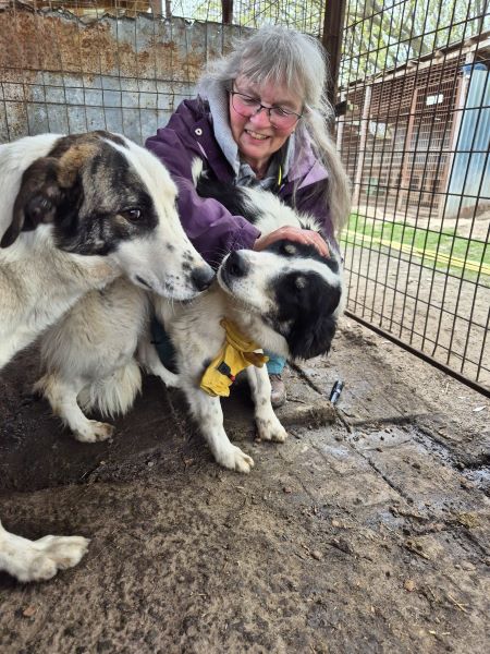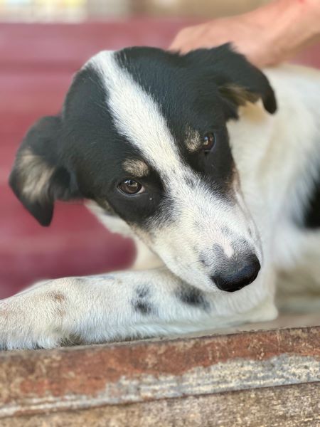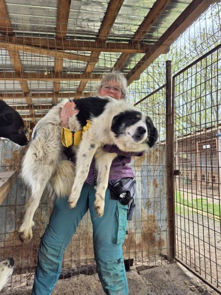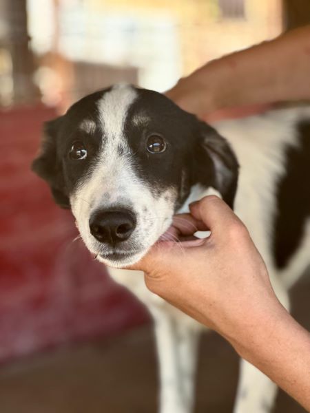 Was für eine freundliche Hündin, was für eine wunderschöne Hündin. Nach ganz kurzer Zeit war sie freundlich und freudig bei uns, und tat es ihrer Mama gleich und nahm Kontakt auf. Ein bisschen unheimlich war es zunächst, aber dann freute sie sich um so mehr und wedelte um uns herum. Sie ist die zierlichste der Geschwister, sehr lieb und überall anfassbar. Das Hochheben war bestimmt unbequem für sie, sie ließ es aber völlig problemlos zu. Für das liebevolle Mädchen wünschen wir uns bitte ganz bald eine weltbeste Familie, sie sich von ihr ebenfalls verzücken lassen möchte.