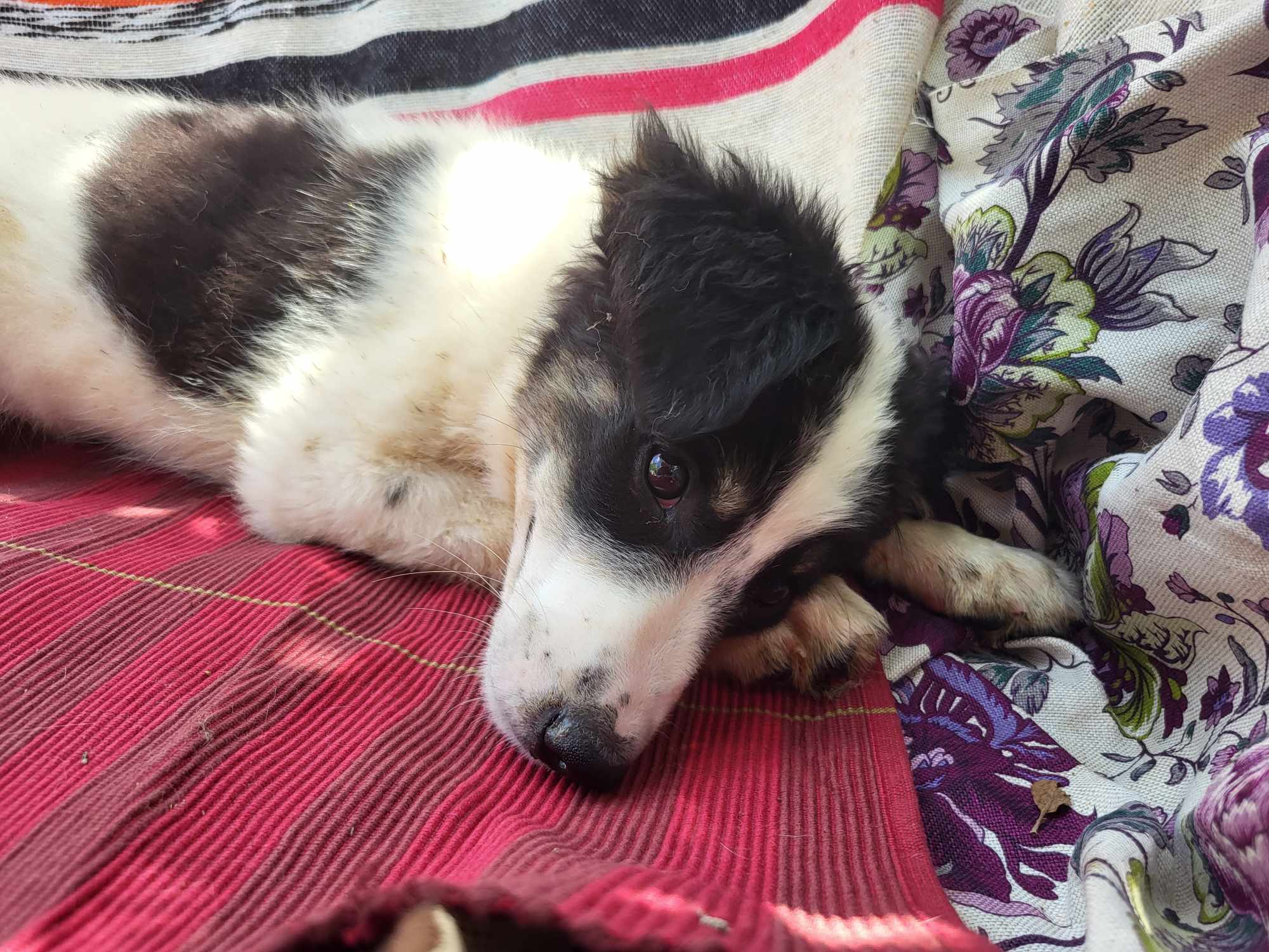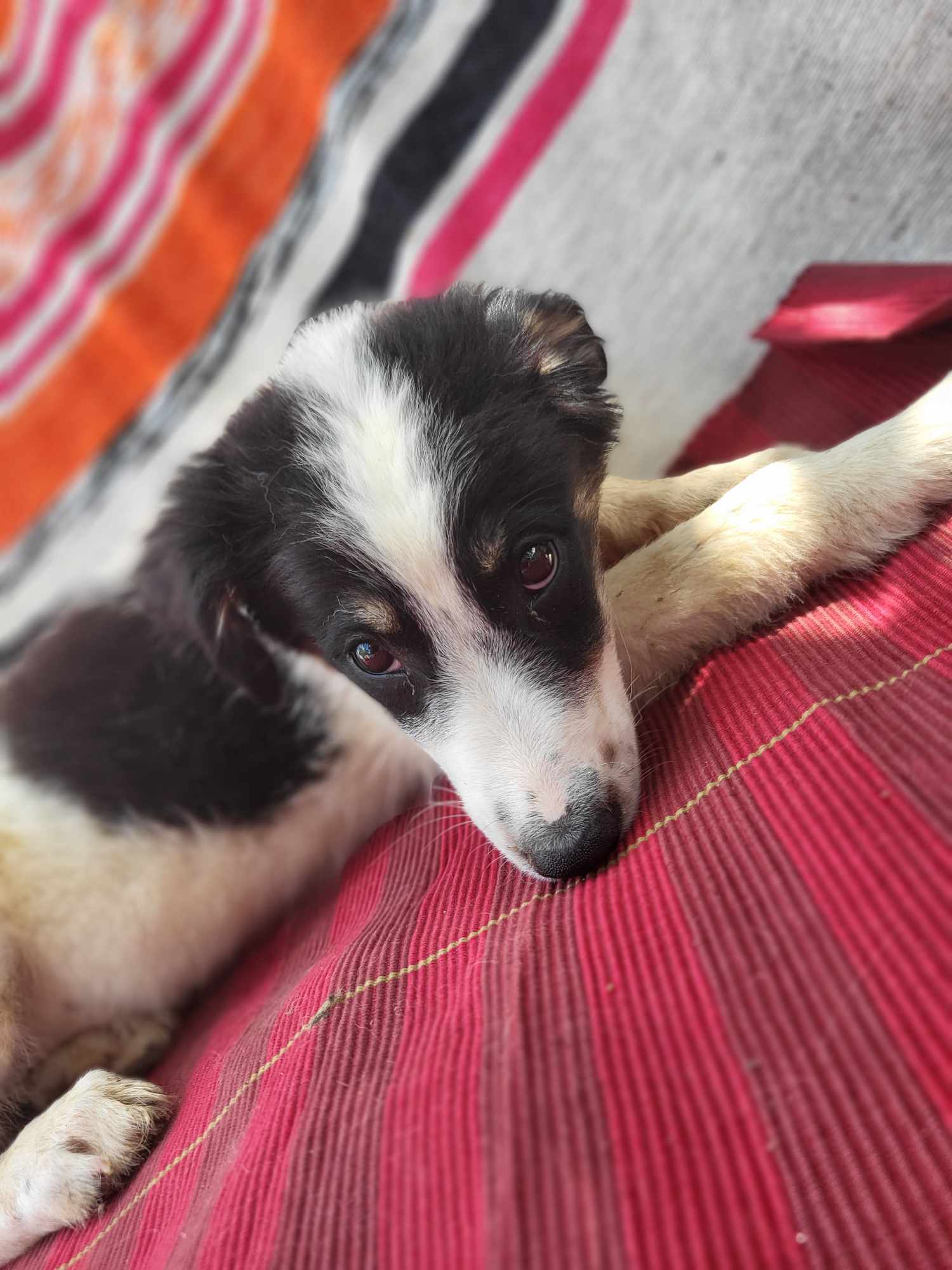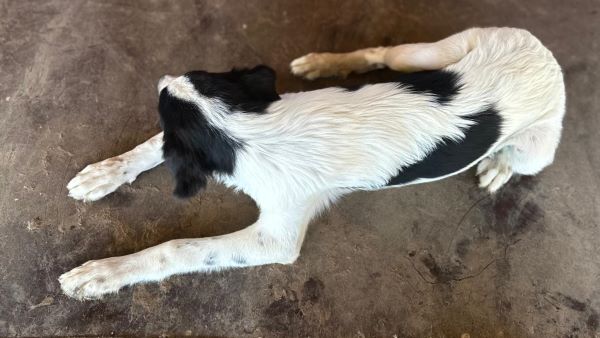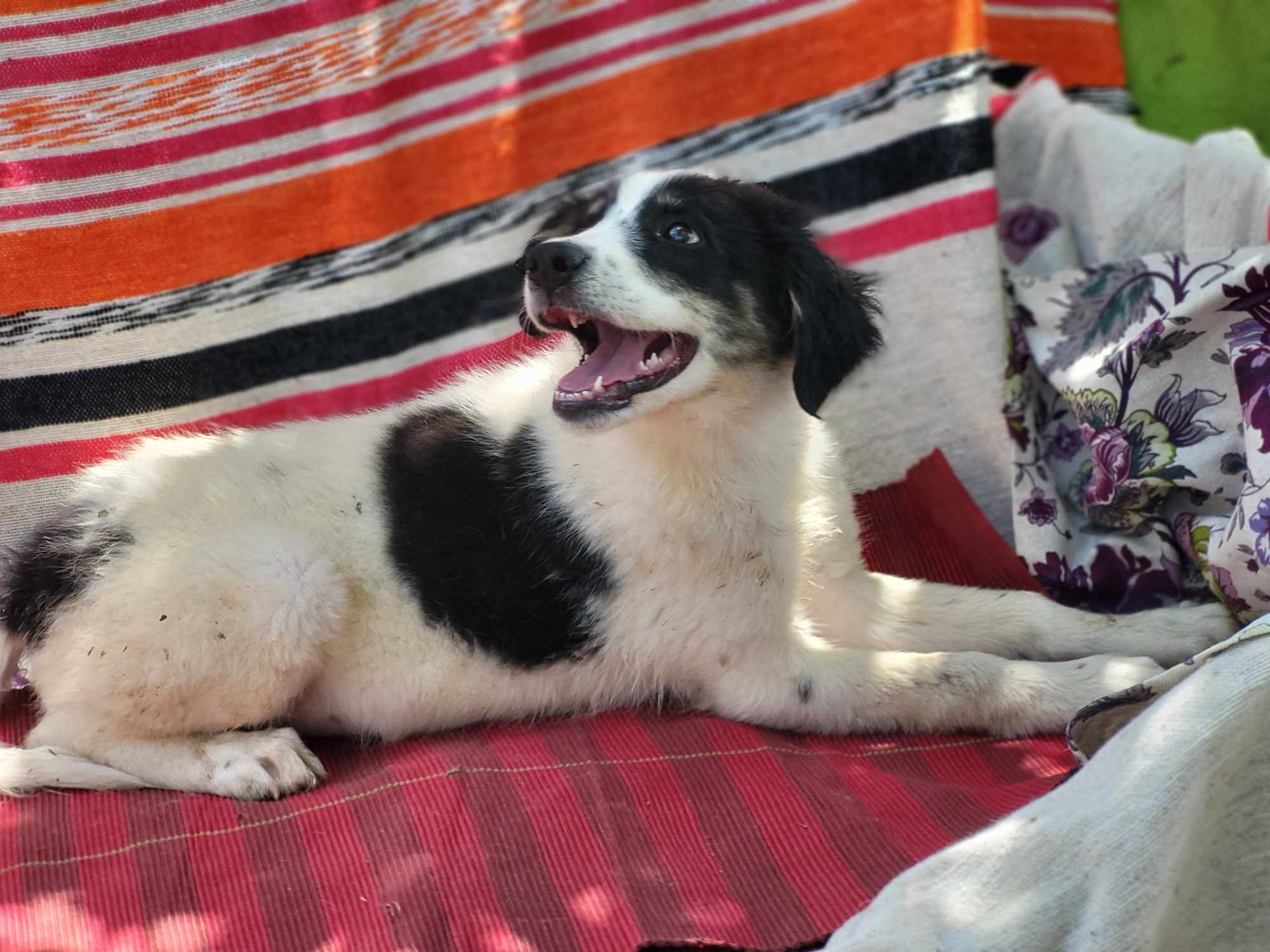 Was für eine freundliche Hündin, was für eine wunderschöne Hündin. Nach ganz kurzer Zeit war sie freundlich und freudig bei uns, und tat es ihrer Mama gleich und nahm Kontakt auf. Ein bisschen unheimlich war es zunächst, aber dann freute sie sich um so mehr und wedelte um uns herum. Sie ist die zierlichste der Geschwister, sehr lieb und überall anfassbar. Das Hochheben war bestimmt unbequem für sie, sie ließ es aber völlig problemlos zu. Für das liebevolle Mädchen wünschen wir uns bitte ganz bald eine weltbeste Familie, sie sich von ihr ebenfalls verzücken lassen möchte.