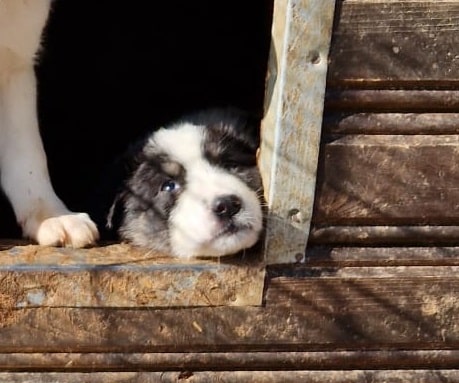 Im kleinen Kennel lebt sie mit Mama und Geschwister harmonisch zusammen.