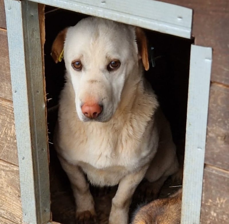 Die süße SWEETY sieht einfach knuffig aus. Sie beobachtete uns neugierig aus ihrer Hütte heraus. Leider wollte sie keinen Kontakt zu uns aufnehmen. Auch die in die Hütte geworfenen Leckerchen wollte sie nicht. Als sie merkte, dass wir mit ihr Kontakt aufnehmen, wich sie aus und versteckte sich in der nächsten Hütte. SWEETY braucht Menschen, die sehr erfahren im Umgang mit unsicheren Hunden sind. Mindestens ein netter Ersthund muss vorhanden sein und würde ihr die Eingewöhnungszeit sicher erleichtern.