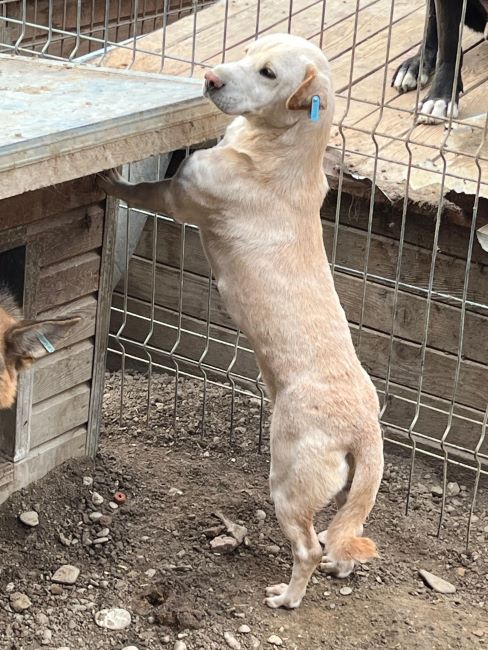 SWEETY ist leider weiterhin sehr unsicher und vor uns geflüchtet, als wir in ihrem Kennel zu Besuch waren.