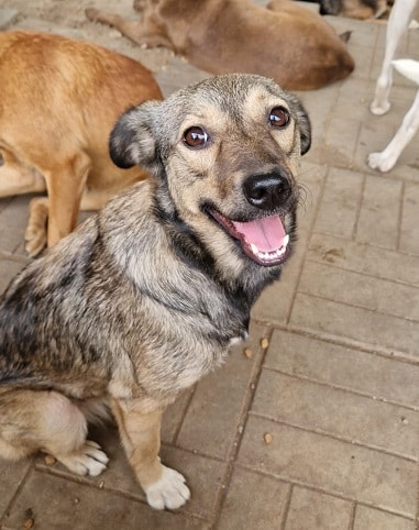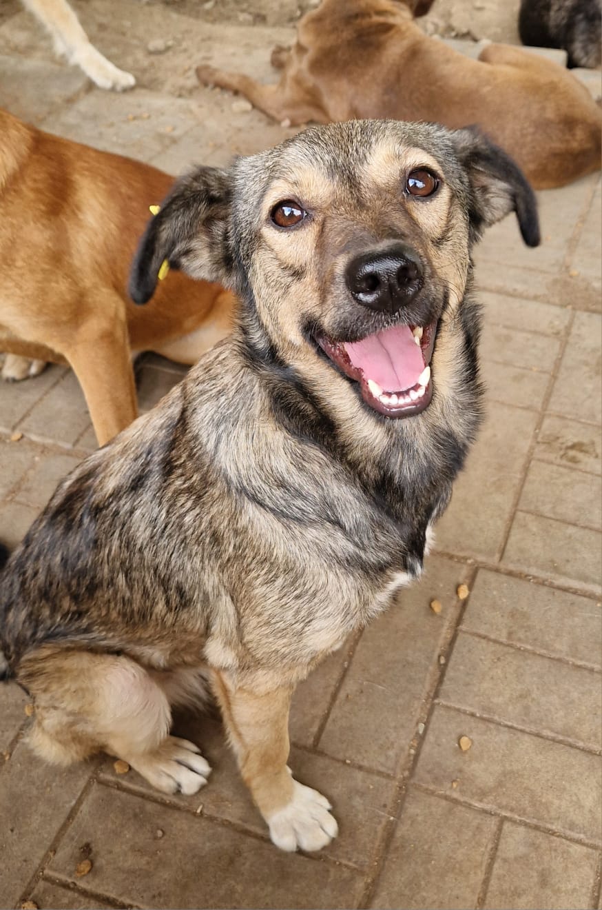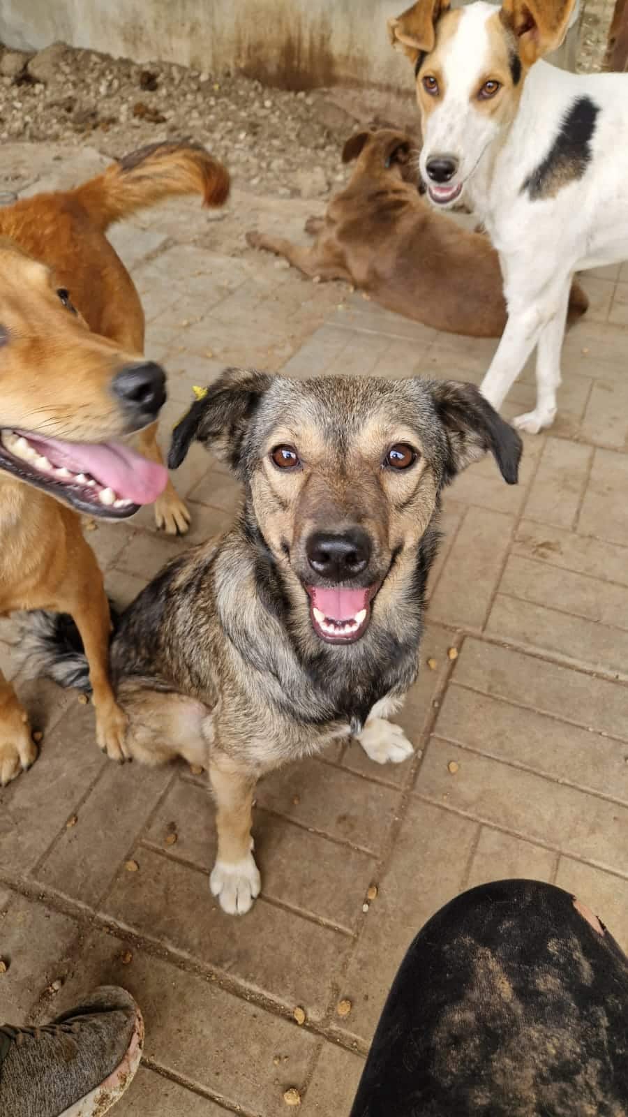 SYMPHONIE ist eine junge, noch etwas unsichere Hündin. Als wir in ihren Kennel kamen, hat sie uns erstmal, zusammen mit einem anderen Hund, ordentlich verbellt. Wir denken, dass sie Kontakt zu Menschen einfach noch nicht wirklich kennt. Sie kam dann aber zu uns, nahm gerne Leckerlies aus der Hand und ließ sich auch vorsichtig anfassen. Dann verweilte sie auch noch eine Weile in unserer Nähe und wartete, ob noch mehr Leckerlies für sie abfallen würden. Der trubel der anderen Hunde, die uns für sich vereinnahmten, machte ihr die Kontaktaufnahme auch nicht leicht.