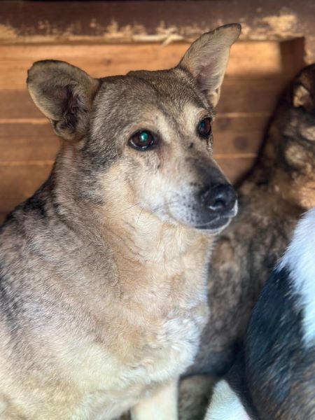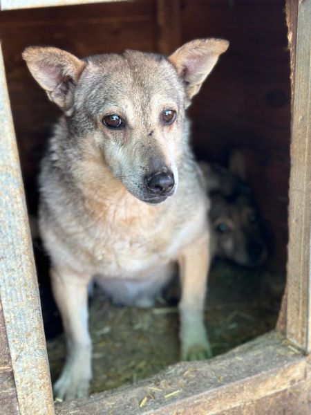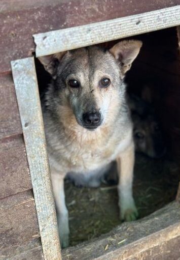 Dieser nette, ältere Rüde schaute uns neugierig aus der Hütte an. Mehr war leider nicht möglich, obwohl er nicht wirklich abgeneigt war. Wer ausreichend Erfahrung mit ängstlicheren Hunden hat, würde ihn sicherlich noch ein schönes Leben schenken können. Da er sehr verträglich ist, wäre ein Zweithund sehr wünschenswert. Genauso wie direkter Zugang zu einem Garten, in dem er nach etwas Eingewöhnungszeit selbstständig raus und rein gehen kann. Ihn im Sommer auf einer Wiese liegen sehen zu dürfen, wäre ein Traum.