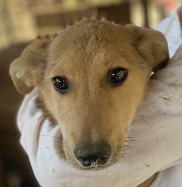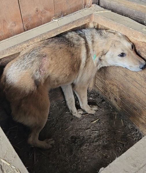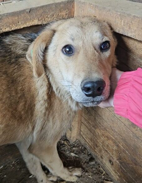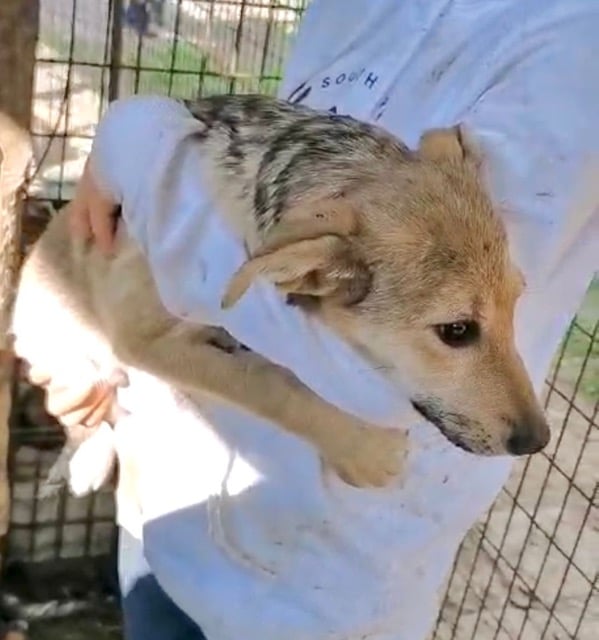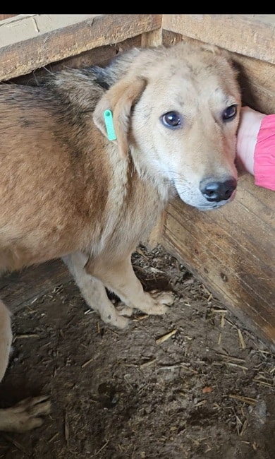 TABITO beobachtete uns neugierig als wir in seinem Kennel waren. Im Gewusel mit den anderen Junghunden kam er auch aus seiner Hütte und schaute interessiert, was wir machen. Als wir uns ihm zuwandten, wurde er unsicher. In der Hütte konnten wir ihn streicheln. TABITO ist seit Welpe an im Shelter und hat Streicheleinheiten nie kennengelernt. Er braucht nun dringend positiven Kontakt zum Menschen, damit sich seine Unsicherheit nicht verfestigt. Noch ist es früh genug. Wir suchen hier dringend eine Ausreisemöglichkeit.